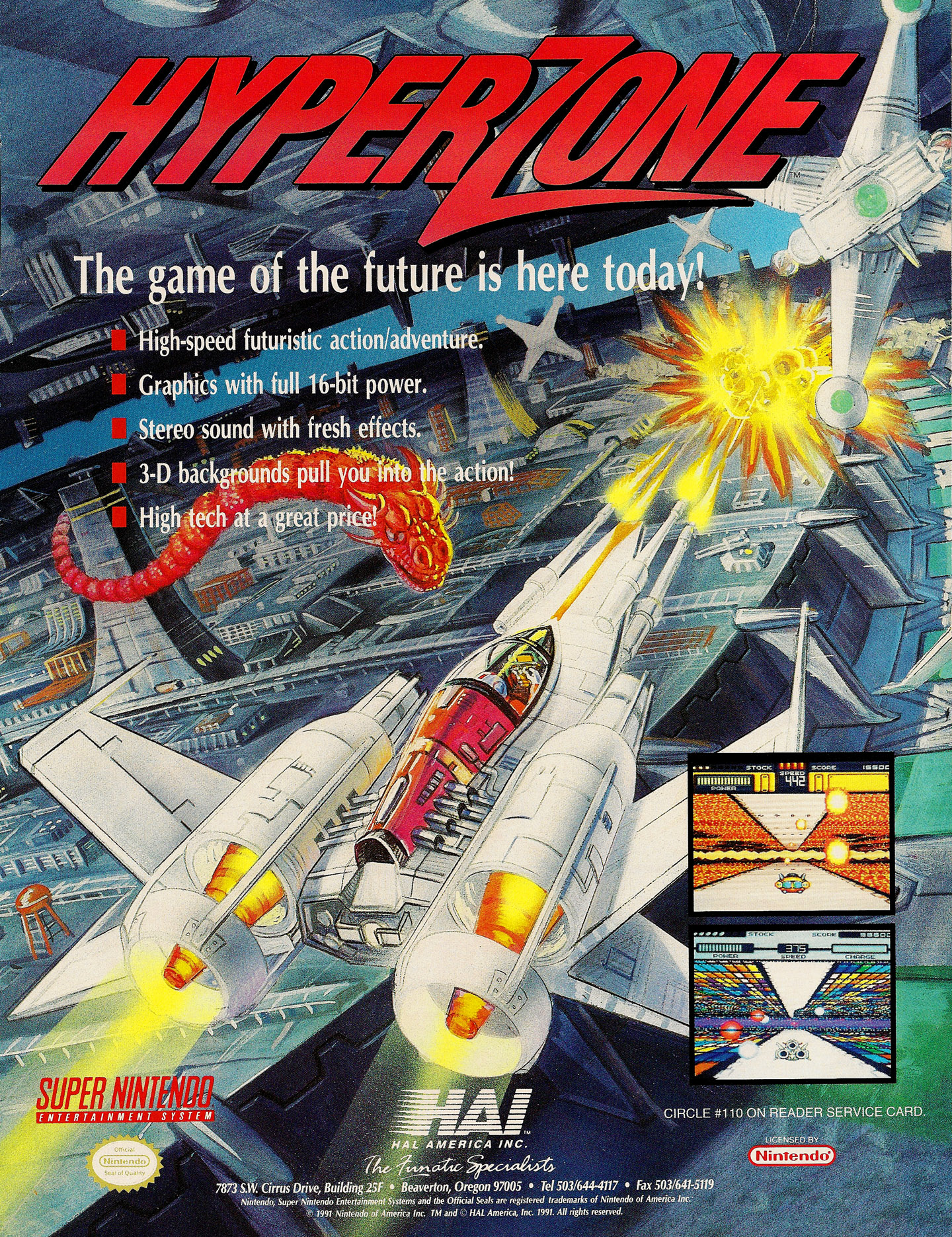 Being their first entry to the 16-bit realm, Hyper Zone is a forward scrolling shooter that is reminiscent of F-Zero. The Earth is being taken over by a race of specialized cybernetic mutants and they have spotted our planet as their new home!
