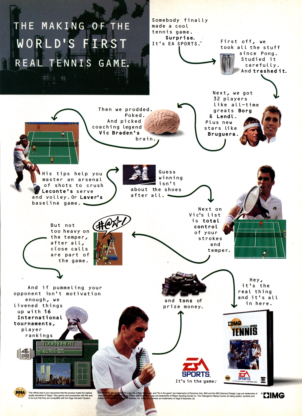 IMG International Tennis Tour has too many control problems to be the best Genesis tennis game. Still, it offers challenging game play and enough realistic details to make it worth trying for a few sets.