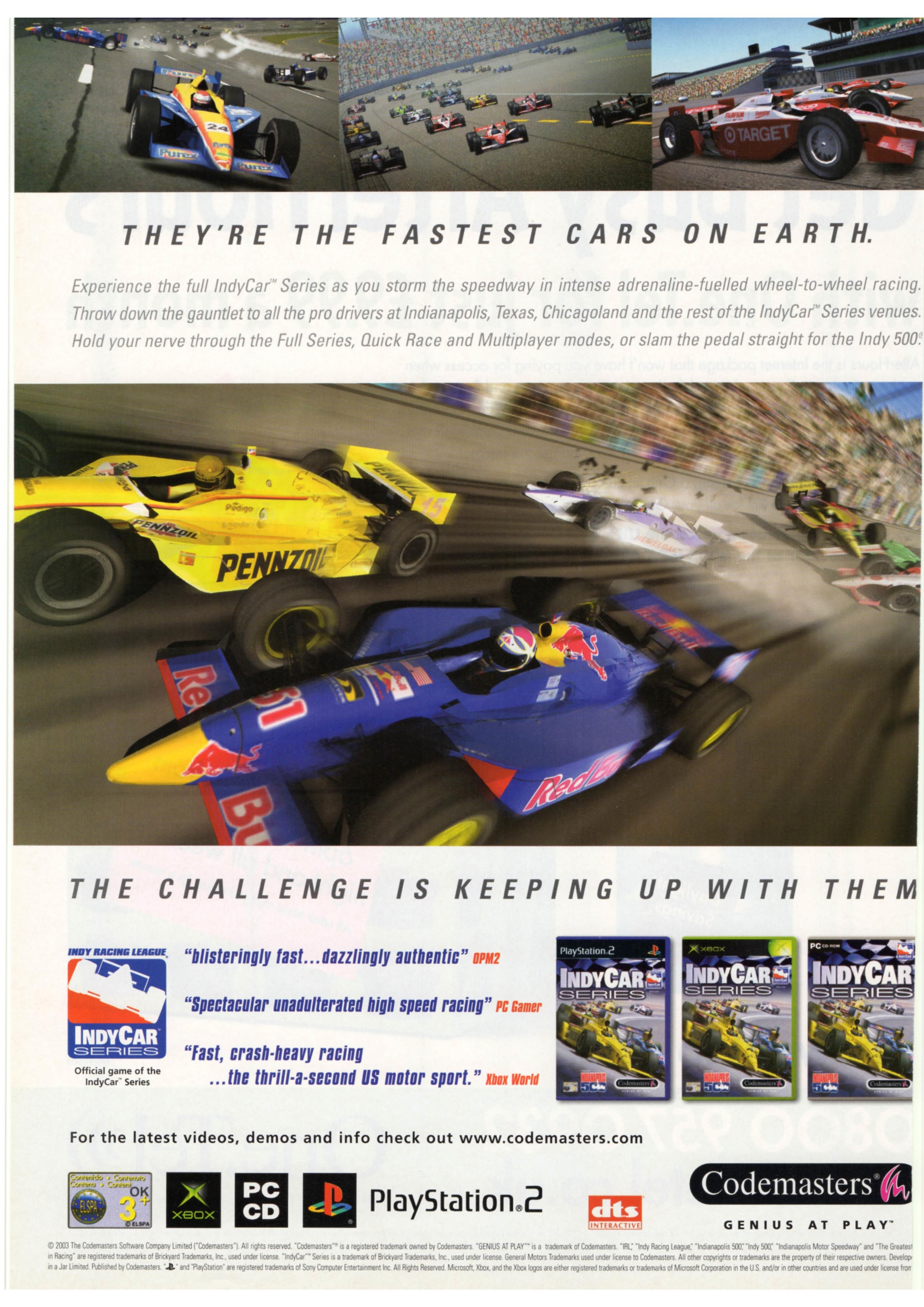 With the creation of IndyCar Series, Codemasters have succeeded in doing what they set out to do. And that's providing Indy Car racing fans with the most realistic and entertaining game to date. If you fall into that category, it's a no-brainer, buy this game now. And even if you only have a mild interest in the sport, give it a rent, grab a buddy, and get your PS2's motor runnin'.
