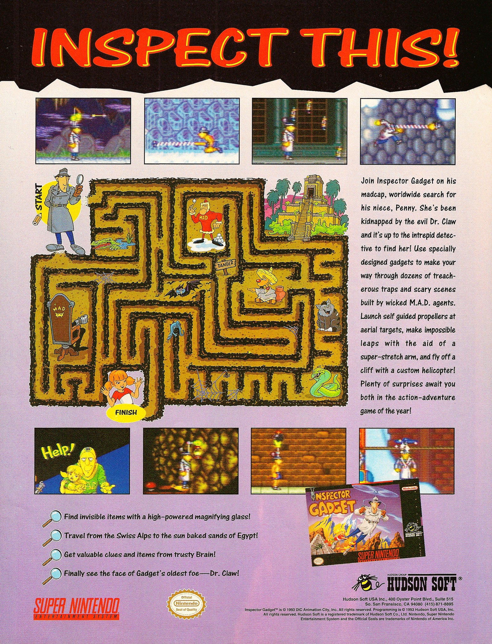 The popular cartoon sleuth of the past has returned. This time around, he's on the Super NES. It seems that the vile M.A.D. organization has started up again, and Dr. Claw has kidnapped Penny.