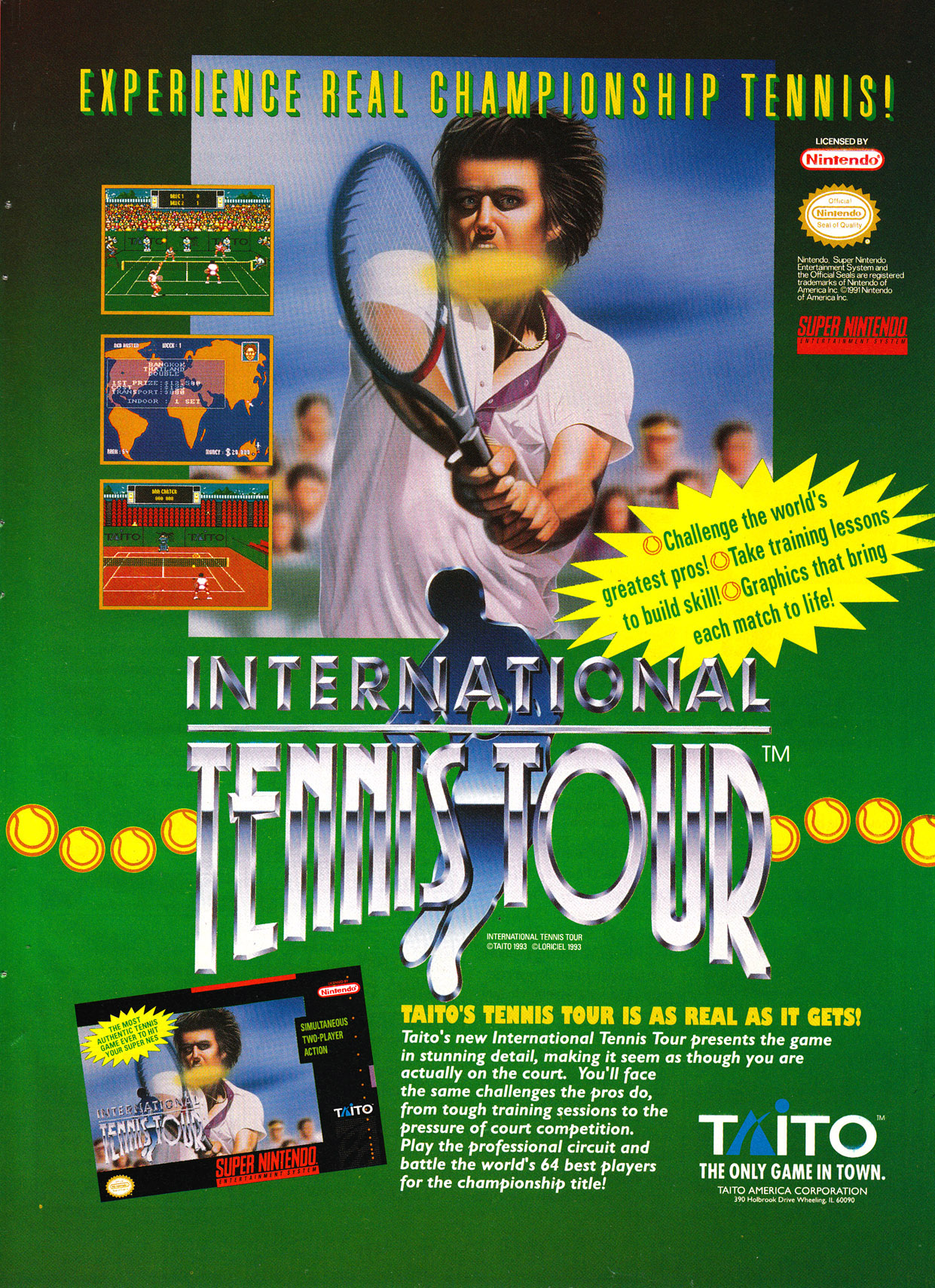 Options, options, options! These are the keys to unlocking the appealing International Tennis Tour for the SNES. While there are many similar tennis games, few offer as much as Taito's latest court game.
