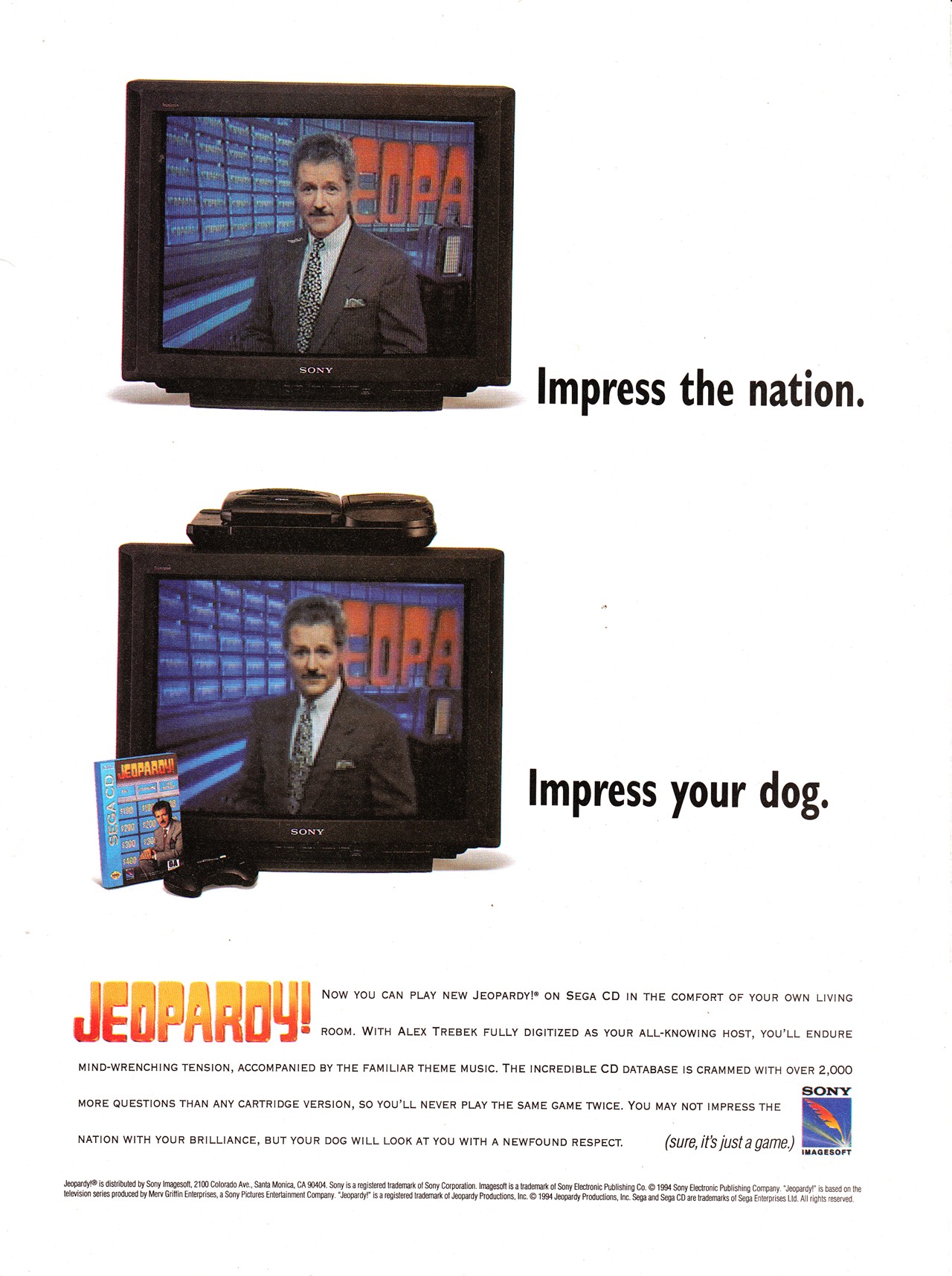 The answer is: Jeopardy! So the question must be: Where is knowledge exploited to win quick cash? In the fine Sega CD version of this popular game show, you crunch your cranium attempting to answer host Alex Trebek's questions -- but don't expect any real greenbacks if you win.