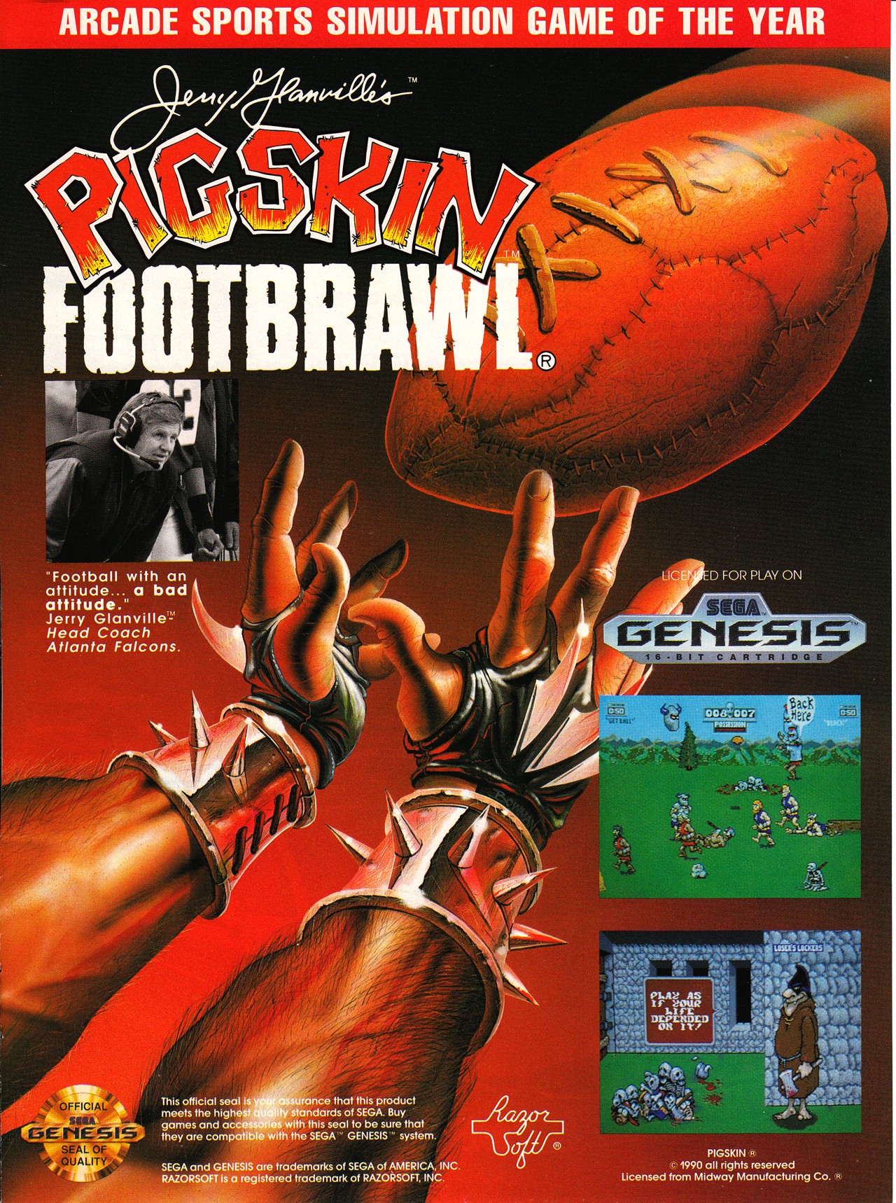 In football, there's a fine line between the game and an all-out war, and Jerry Glanville's Pigskin Footbrawl has crossed it! This is a game designed for players who love their blood and guts more than the touchdowns! Choose your plays and then choose your weapons!