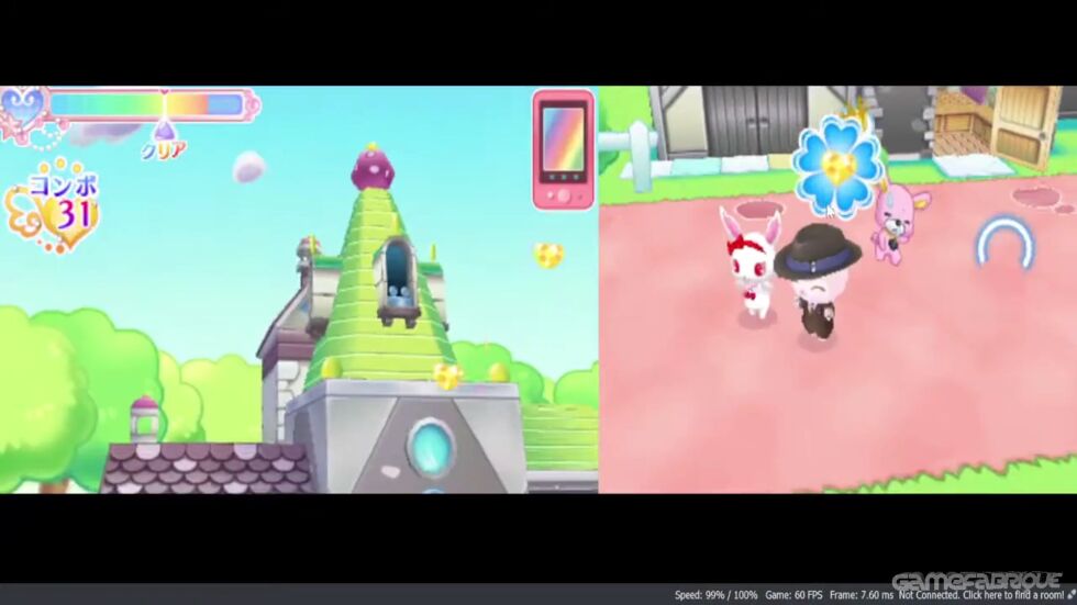 Jewelpet: Magical Rhythm Yay! - is a rhythm game based on the popular Japanese franchise Jewelpet, developed for the Nintendo 3DS platform. The game features 16 lovable playable characters, and the player's job is to help them travel through a magical world. It's classic dance game gameplay - you have to hit the notes in the right rhythm in various mini-games.