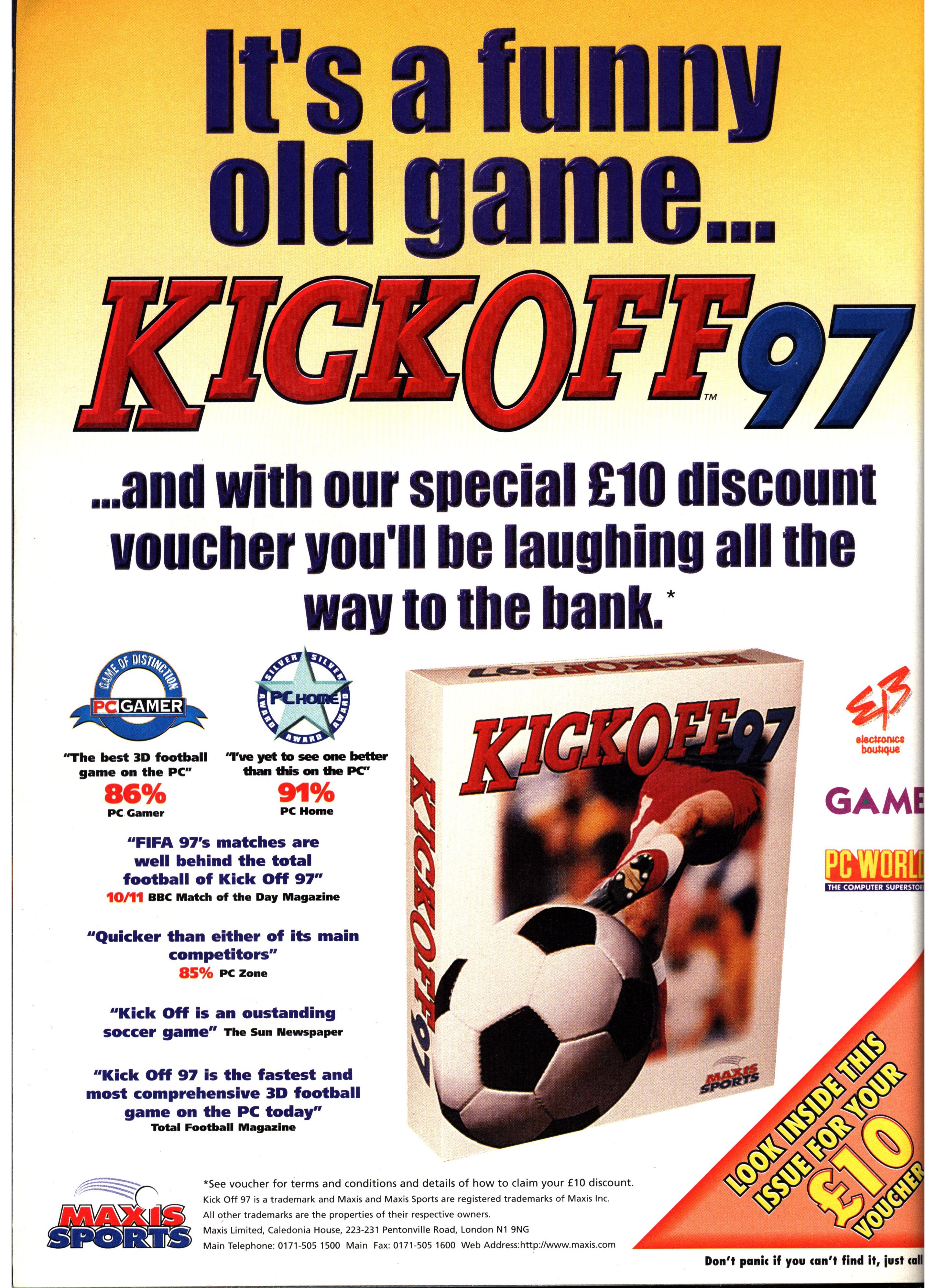 Fast forward again and it's today - half past nine in the morning, to be exact And Kick Off 97 is now here. It's motion captured and uses the obligatory 'real' footballers that do so much to make us buy a game. In this case, though, they're Arsenal footballers. (Insert boring game joke of your choice here.) And really, it's all right.