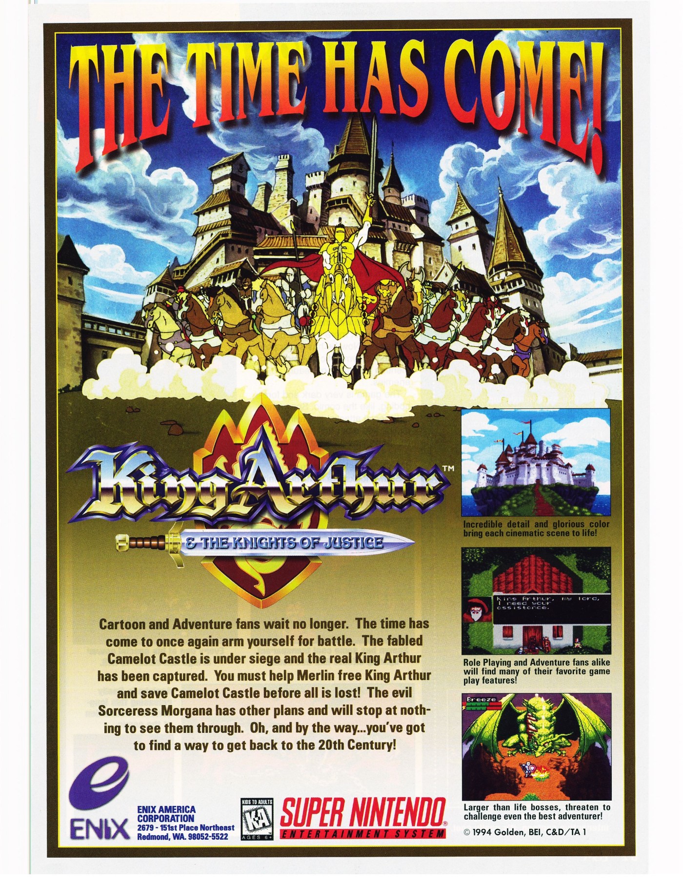 I was completely taken by surprise with this title because it really didn't live up to the standards of one of the top video game developers. King Arthur tries to be Secret of Mana, but fails to emulate what made SOM such a success. The graphics are poorly done and look washed out. The sound, although good, was dull and uninspired. Even though this was based on a successful animated series, the adventure of the game was not at all interesting.