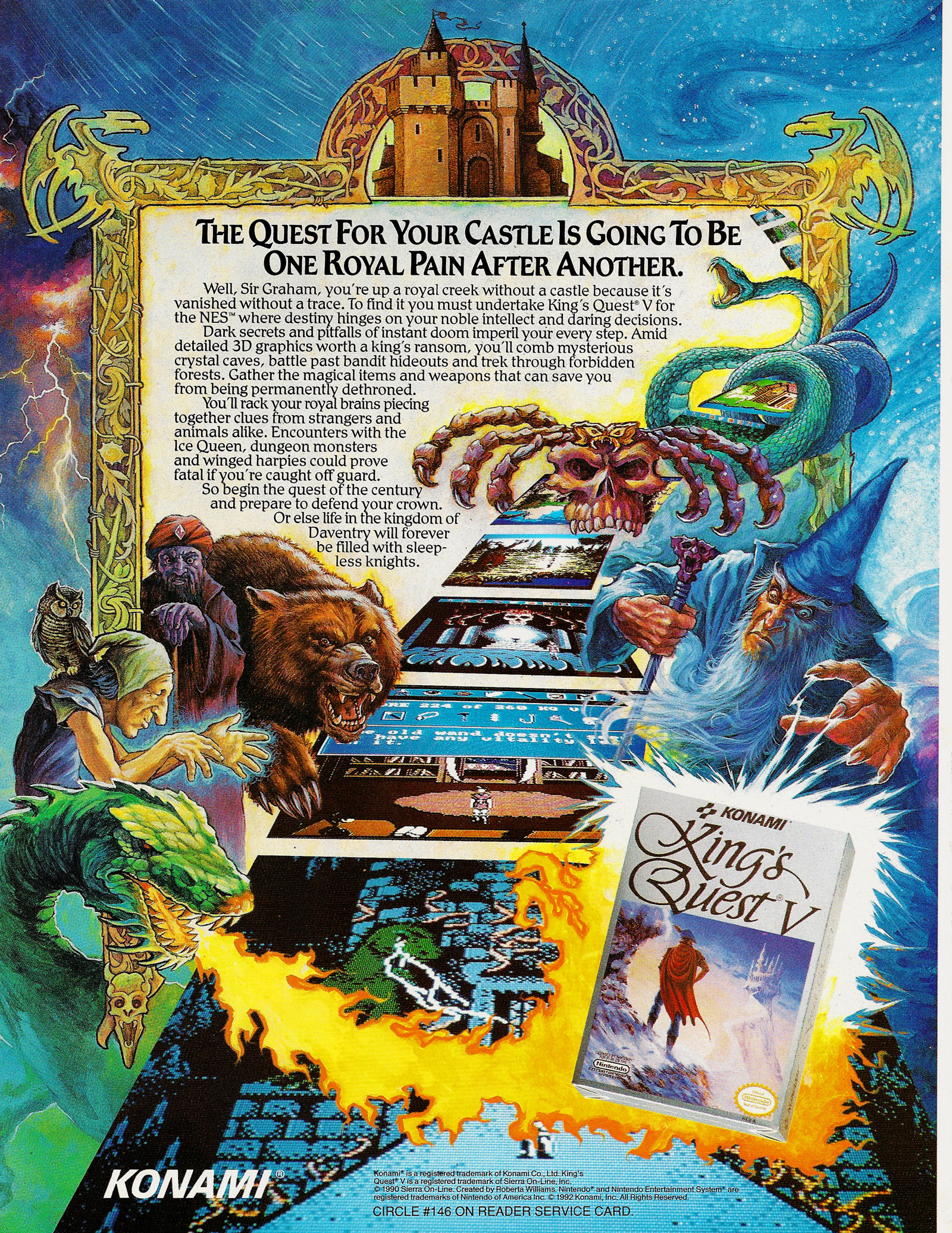 All too often, video RPGs are combat-heavy clones of one another. Sure, monster-crunching can be a blast now and then, but King's Quest V's creativity makes it one of Konami's crowning achievements.