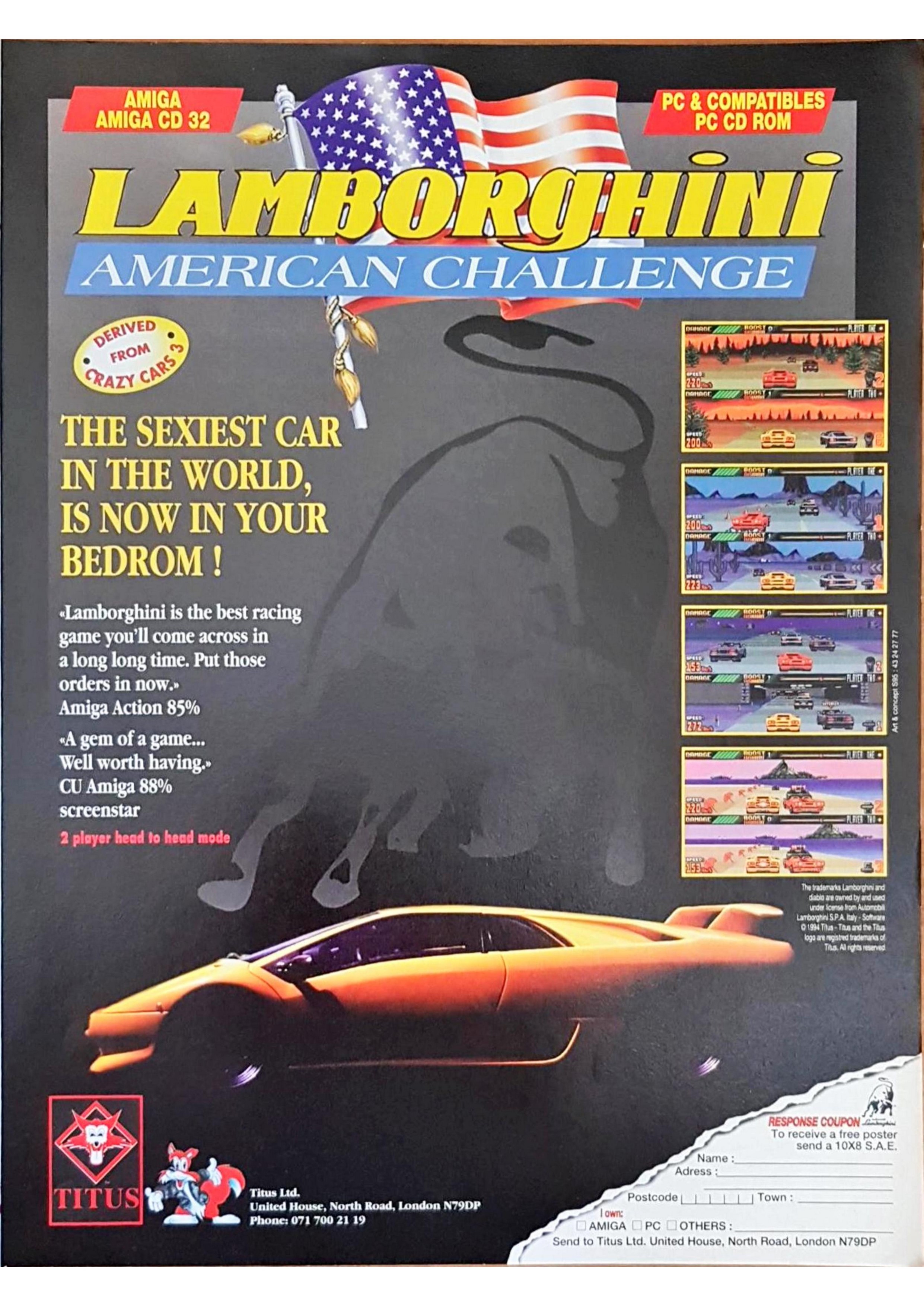 Titus has a history of developing racing games that goes back to early efforts like Crazy Cars for the PC. Now it's taking a run at the portable market by releasing Lamborghini American Challenge for the Game Boy. While the action and details aren't great in this crosscountry competition, the enormous variety of races (48!) will keep you trying for the winner's circle.