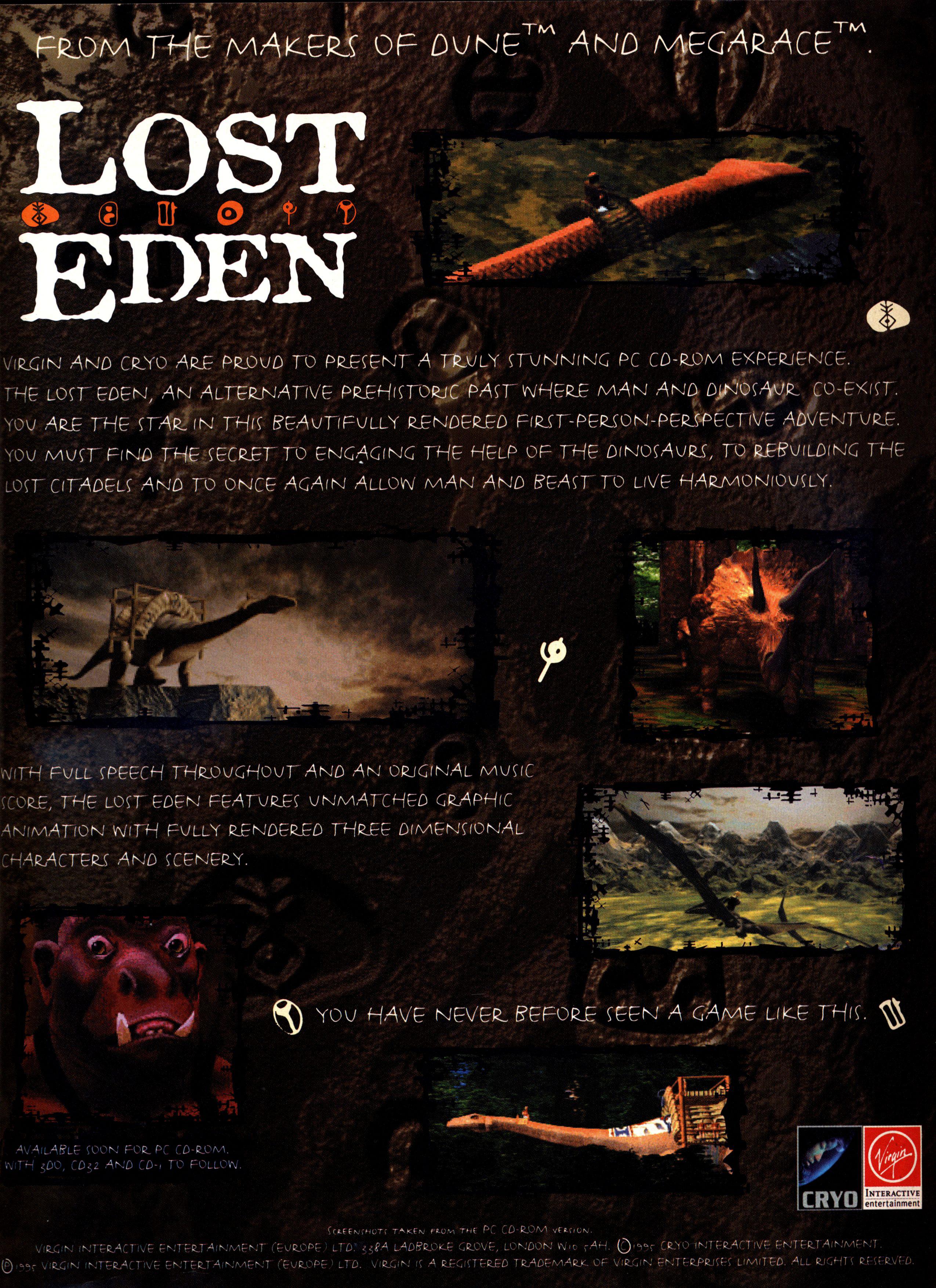 Lost Eden features three things that make an adventure great: a good story, beautiful graphics and a sweeping soundtrack. Add an easy interface and a bunch of nasty-looking ogres and dinosaurs and what you've got is an adventure game that's a cut above the rest.This game will pull you in and keep you playing for hours.