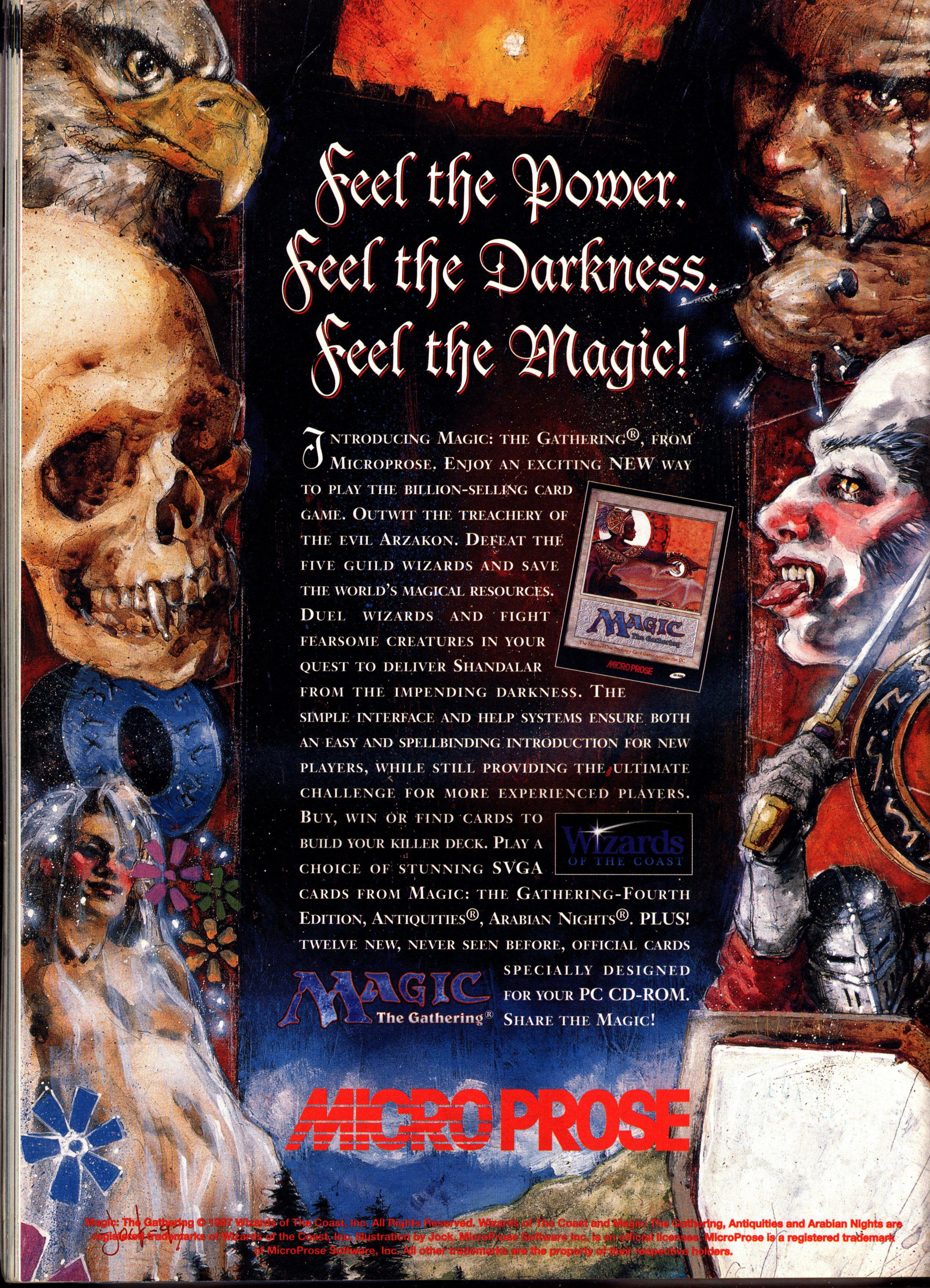 More than 100 beautifully drawn decks prepare you for battle, and the useful Deck Builder utility organizes the whole deal. MicroProse also threw in an adventure game where players battle wizards and other mythical creatures with their Magic cards, building up their decks and characters along the way.