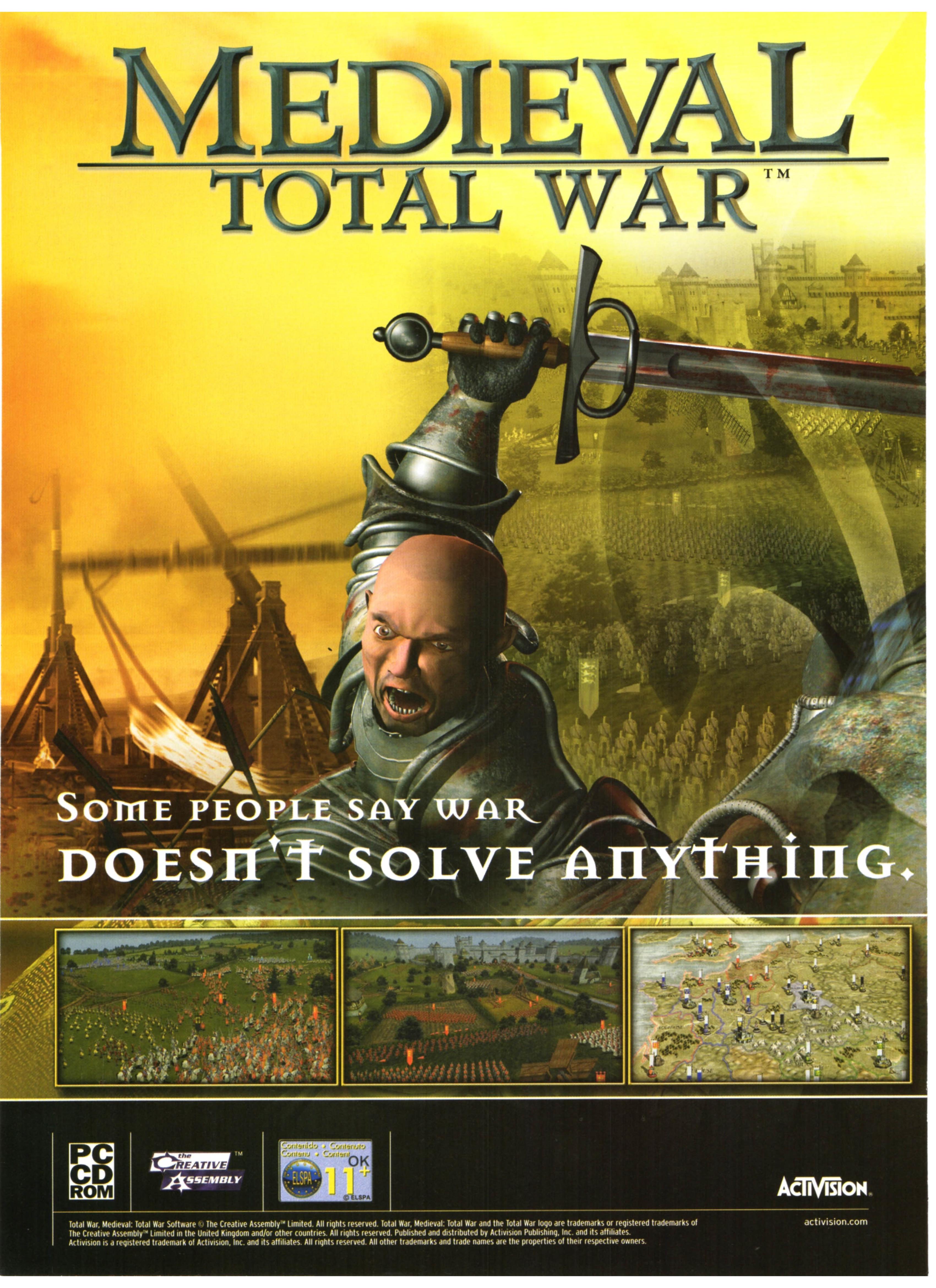 When I heard that Medieval: Total War was coming out, I couldn't wait to get my hands on it. I thought for sure they would finally fix what I considered to be the biggest downfall in the original game: multiplay. To my chagrin, they didn't. Total War is a fun game to play alone and has great potential for replay, but don't count on it fulfilling your online gaming needs.