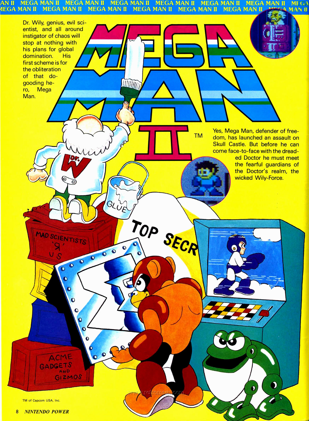 Dr. Wily is back again with a new cast of super-human nasties! Mega Man 2 returns where the first game left off, only this time Mega must take on eight brand new bad guys! Each one of these genetically altered Bosses has a special ability that Mega Man can obtain - but first he has to beat them and the guards that patrol each fortification.