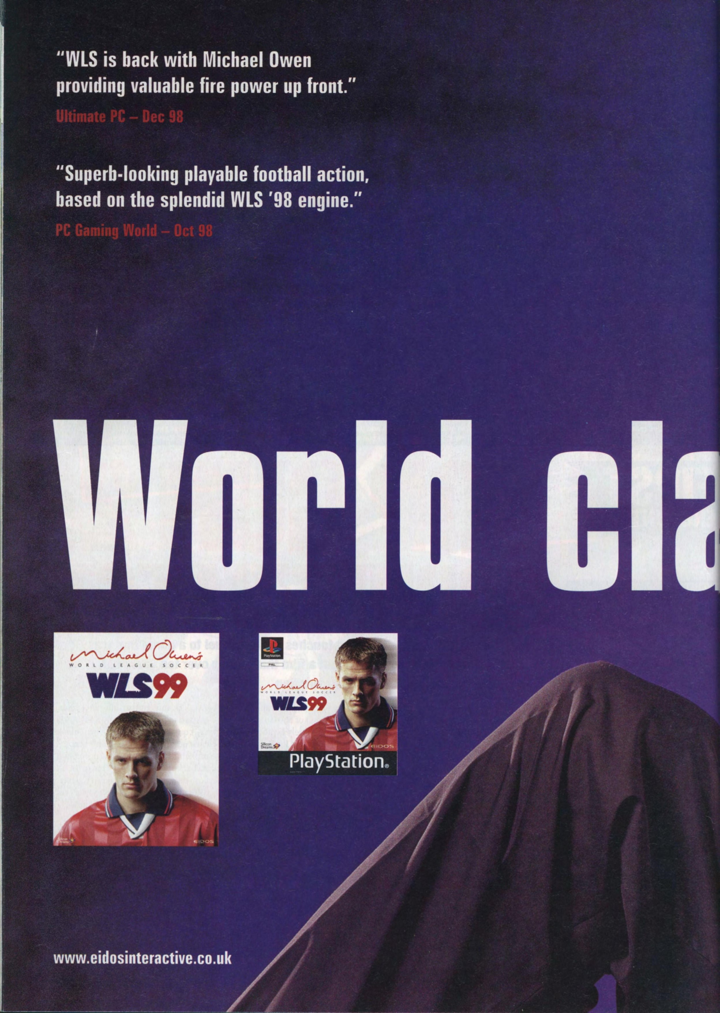 Regular perusers of game shops may have already seen this game clogging up the shelves, The Boy Owen's faux-sullen pose lurking amid the pre-Christmas detritus. So why are we so late in reviewing it? Because we didn't receive a copy until a couple of days before its release, traditionally a ploy by worried software companies to provide damage limitation on titles they consider suspect. They've clearly got it wrong though, as Michael Owen's WLS '99 is a decent game, building on the moderate success ot its predecessor and correcting many of the flaws that rendered it so niggly.