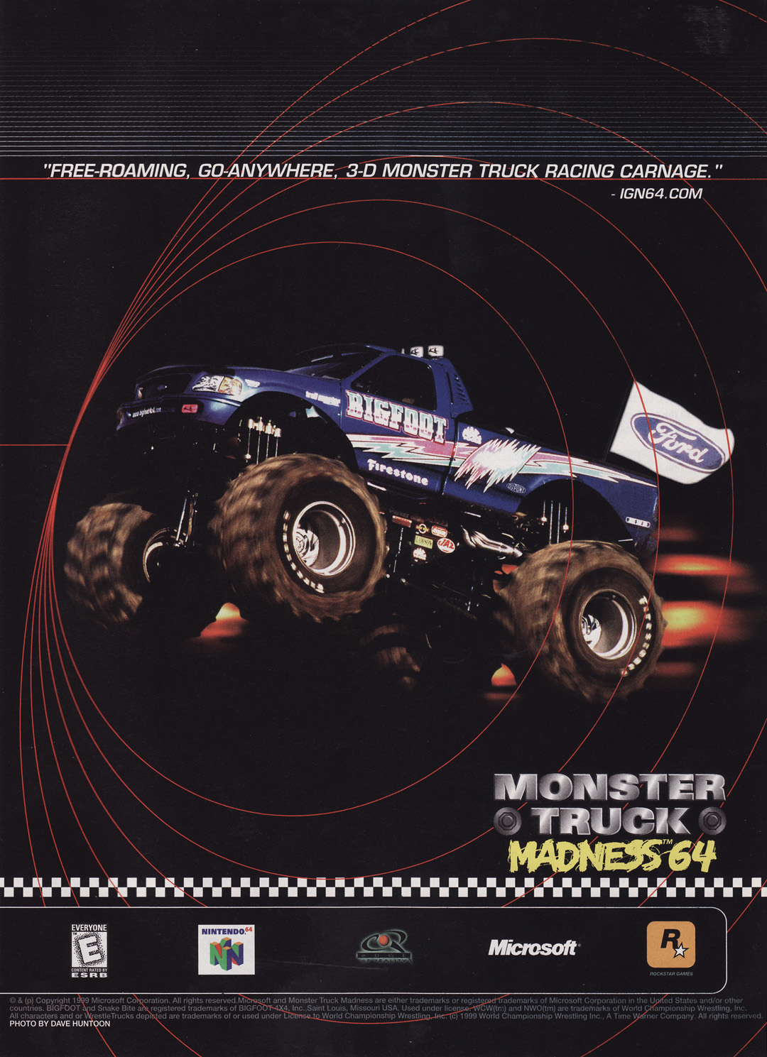 Rockstar (a new publishing label under Take 2 Interactive) will be bringing out Monster Truck for the Nintendo 64 later this year. This off-road racer is based on Microsoft's PC game of the same name but will have new exclusive features. As of press time, we weren't sure what exactly these features are (all we were told was, "The N64 version will have a lot of new s***.'"), but we do know the cart will have new cars and tracks.