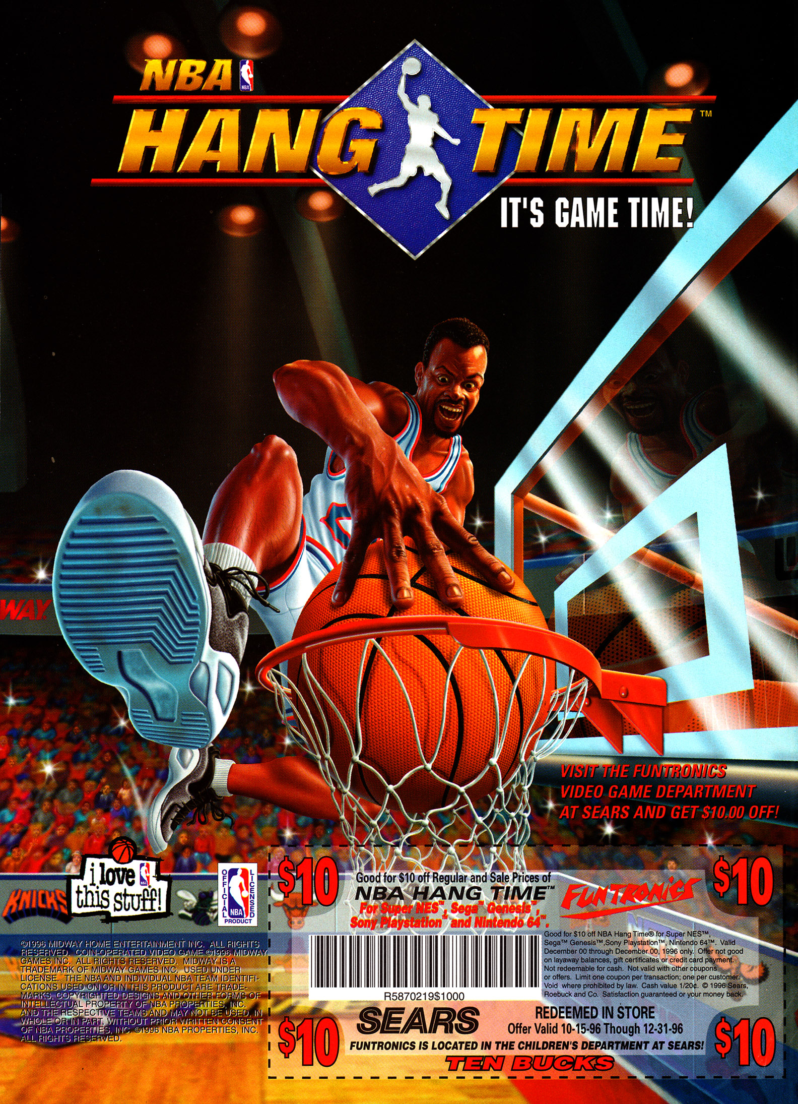 If rough edges don't saw away at your fun, Hangtime's controllable dunks and half-court gameplay provide a fresh change of pace. The adjustable difficulty and wide range of teams should keep the challenge constant -- just don't expect the sharp sprites and run-n-gun fun of NBA Jam.