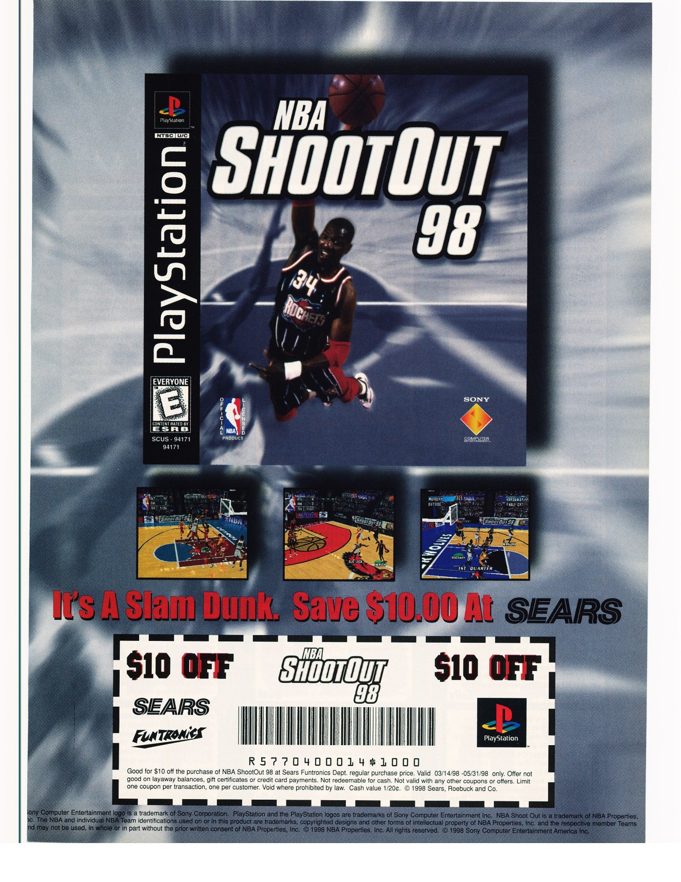 NBA Shoot Out supplies a rare combination of style and substance, sending it on its way to becoming the best basketball game ever created. It features all 29 NBA teams, authentic players, playoffs, trades, set offensive plays, and stat tracking. The amazing graphics are highlighted by Latrcll Sprewell's motion-captured dunks, and everything from the court to the fans and players help make basketball look beautiful. The sound still needs smoothing out, but that's only a minor flaw in an otherwise remarkably fun, realistic game. Shoot Out shines-it's sure to leave its competitors stranded on the bench.