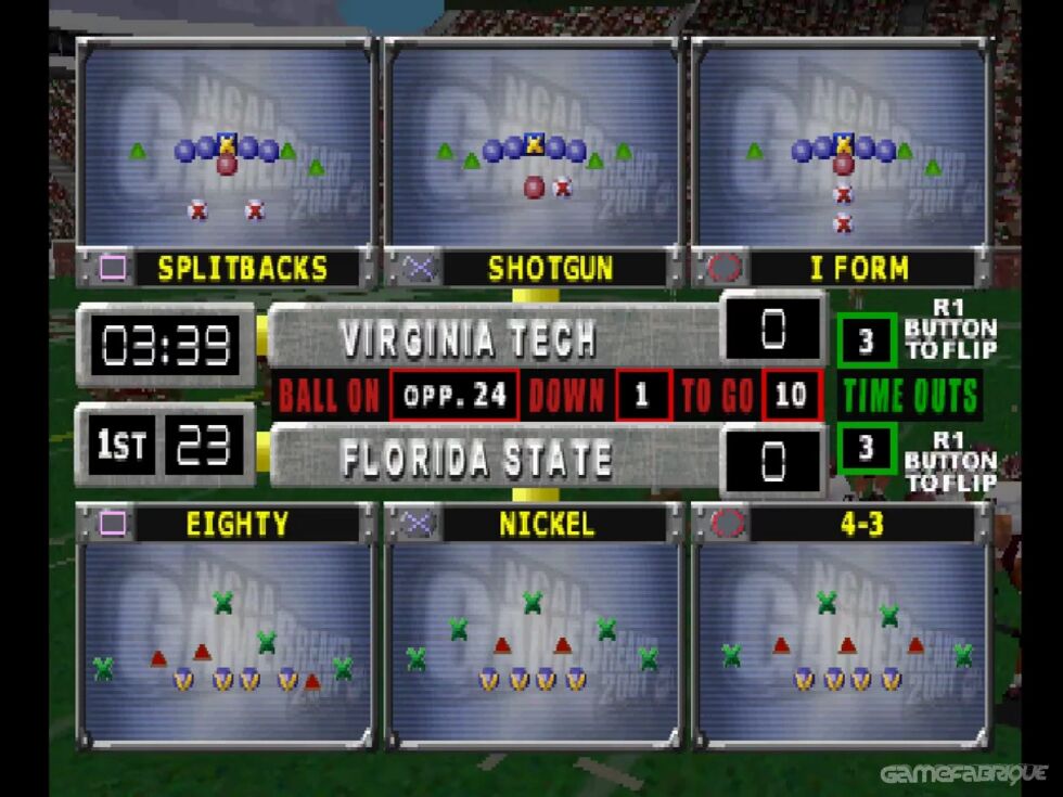 Here's a good example of a title marking its time before the jump to the PS2. Aside from the prerequisite updates (rosters and play-by-play) it doesn't push the envelope too hard. Just the same there are changes. First off, there's a larger variety of tackles and broken tackle animations.