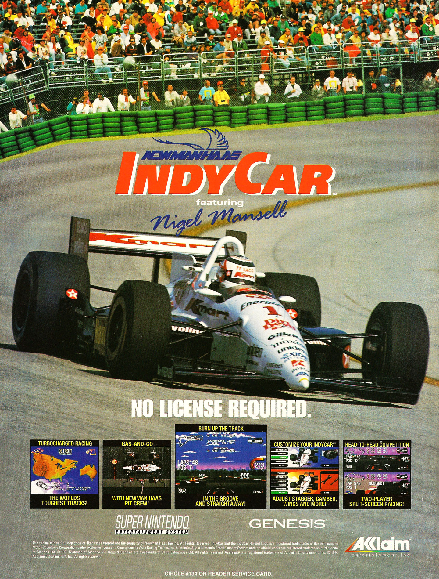 If you like loud, fast racing, jump into one of the Newman Haas racing team's Indy cars and hit the track! This game offers some of the best 16-bit racing of the season.