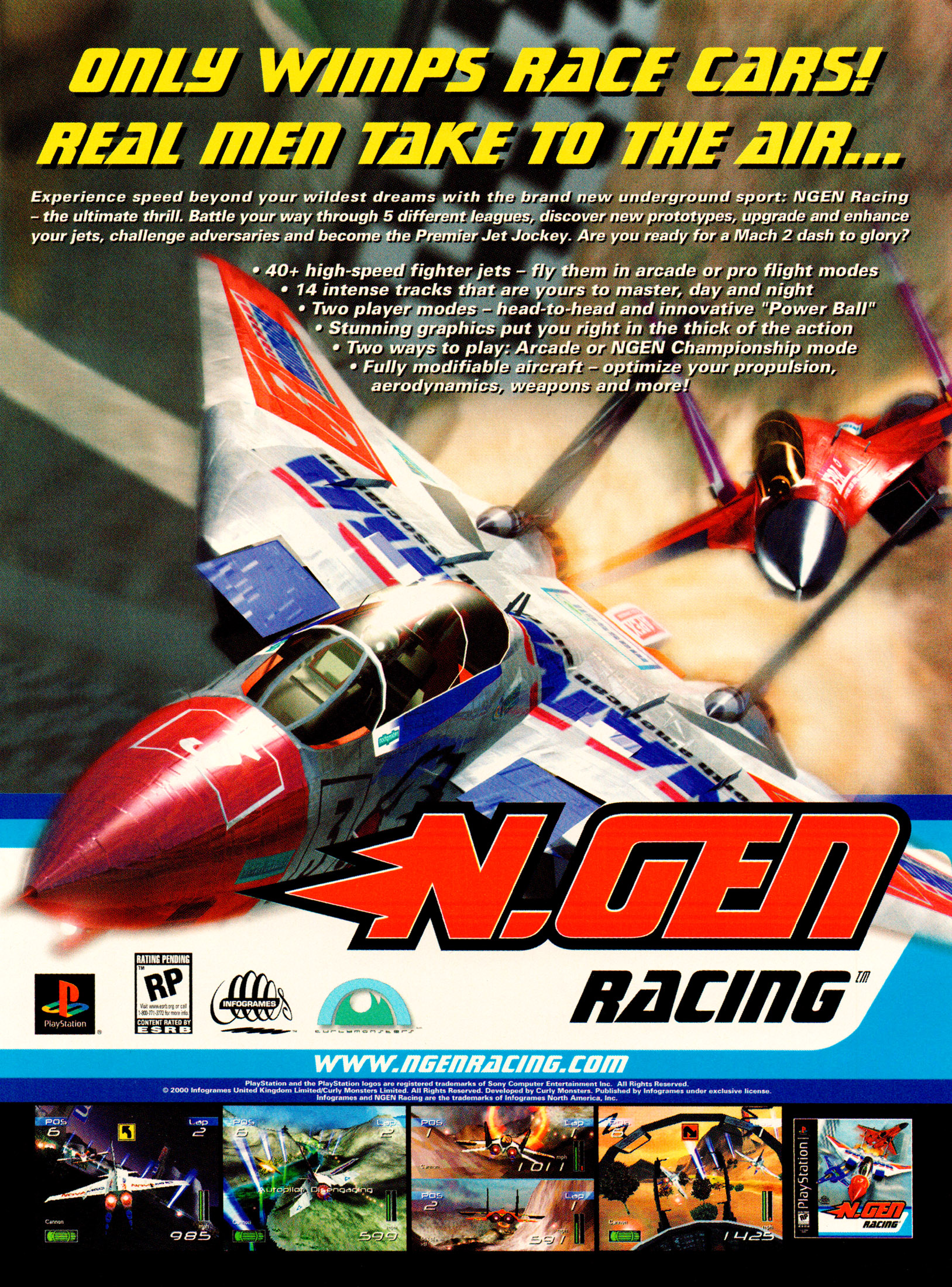 You’ll laugh, you’ll cry, you’ll think its better than WipeOut! However, while it is good for a relatively simple racing game, it isn’t quite as cool as the _Wipeout series. What NGEN Racing does have going for it is sheer innovative control and handling. When I first got a chance to play NGEN, I said to myself, "This is just gonna be another racing game knockoff, total snorefest." Boy, was I wrong. Let me tell you how.