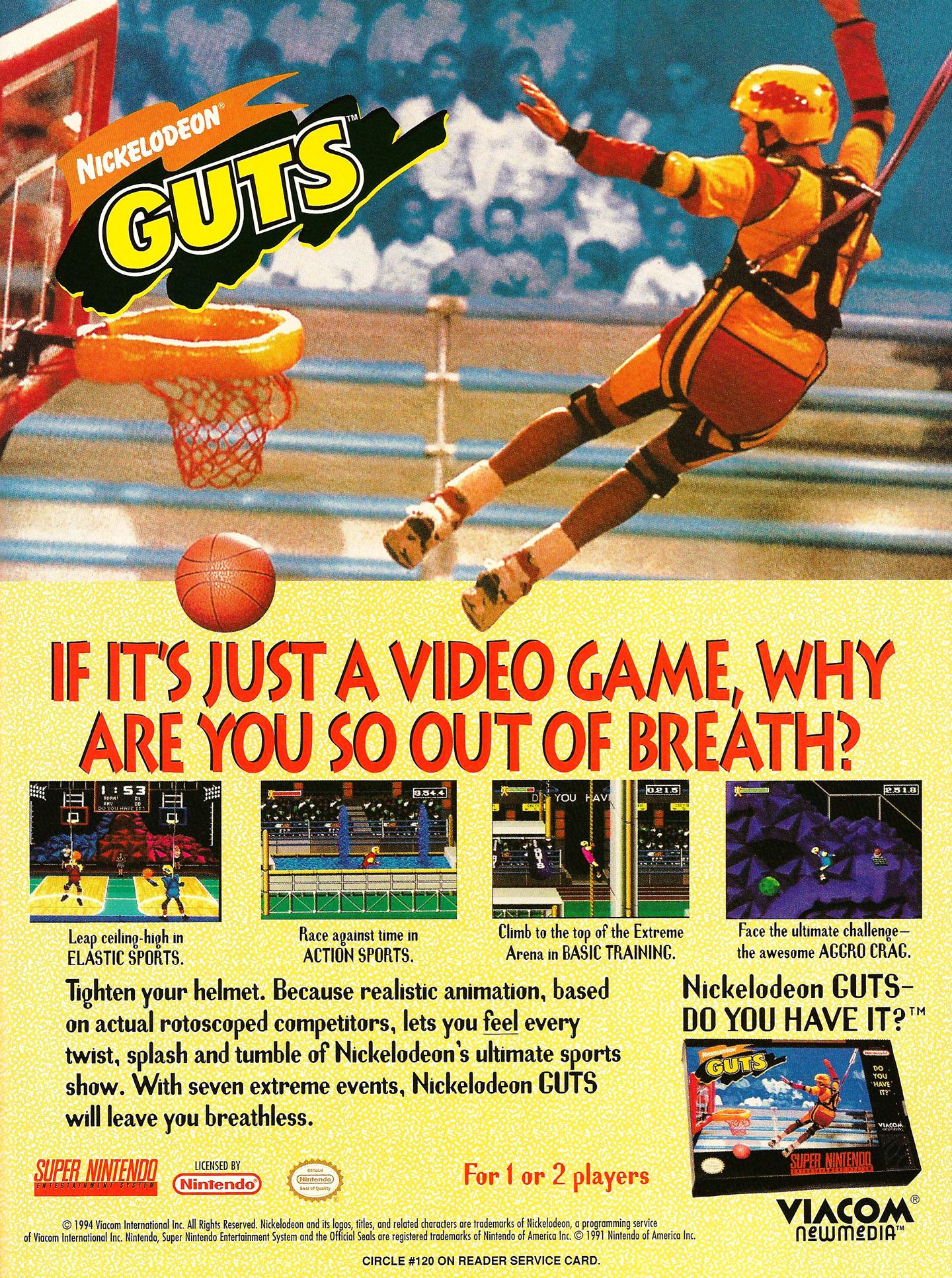 Do you have what it takes to take on Nickelodeon Guts, a competition J where kids perform awesome athletic feats? Can you meet the challenge of incredible elastic and action sports? Then you have the Guts to take this game on.