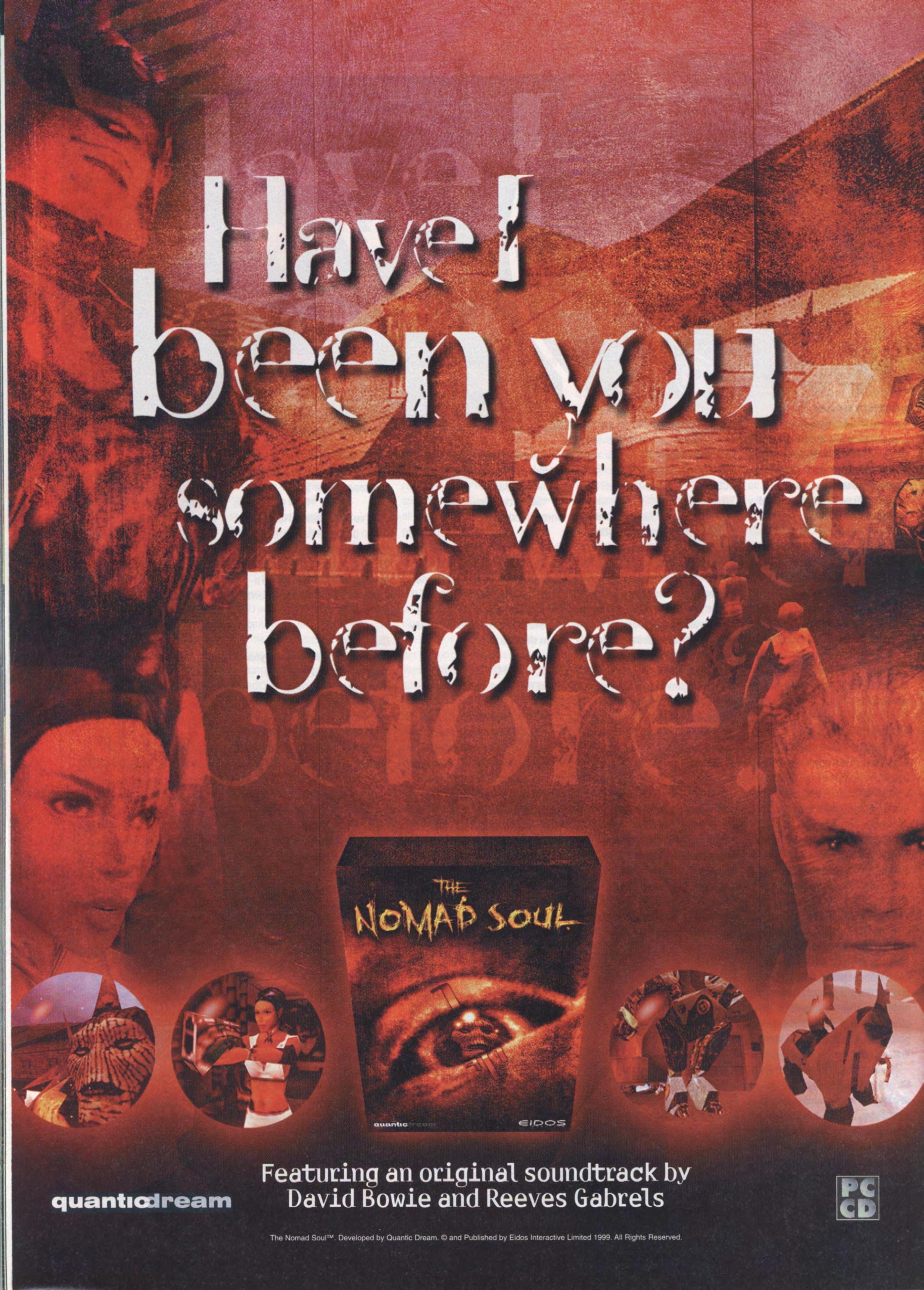 - "What a totally surreal and engrossing experience. This is one of the few games I've ever played where I actually feel as though I'm there. That's not just down to the graphics either. It's the subtle touches like being able to talk to anyone (almost) and looking out for traffic when you cross the road, not to mention watching David Bowie in concert. " The Nomad Soul is highly original and lovingly executed -good work, weird French fellas!"