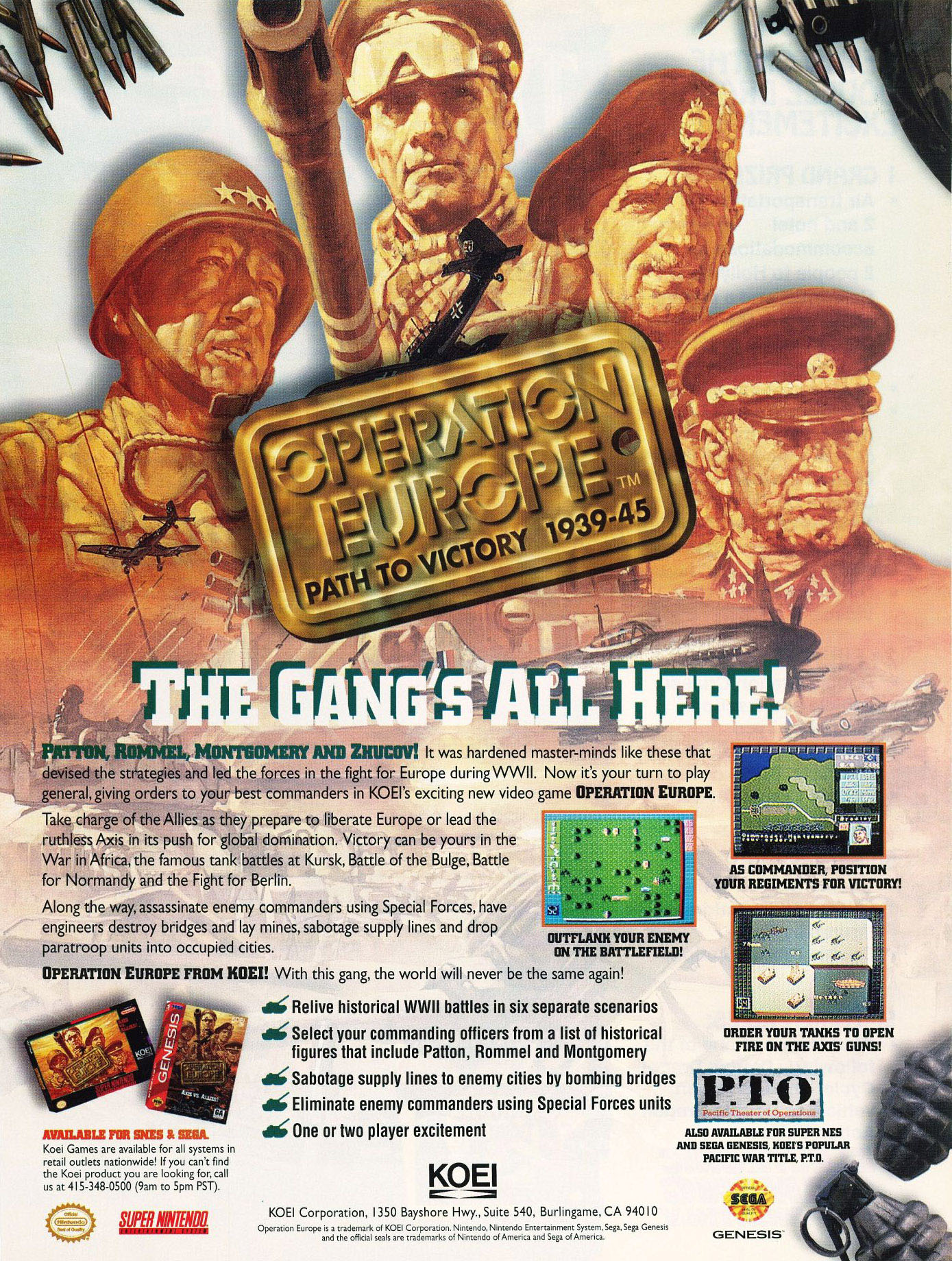 The problem with most strategy games is that once you beat them, there's nothing new to try. Koei has solved this problem beautifully by cramming six detailed scenarios into Operation Europe. Each scenario focuses on a different part of Europe, with battles ranging from Normandy to the fall of Berlin. The requirements for each victory are so different that you really have six different games in one.