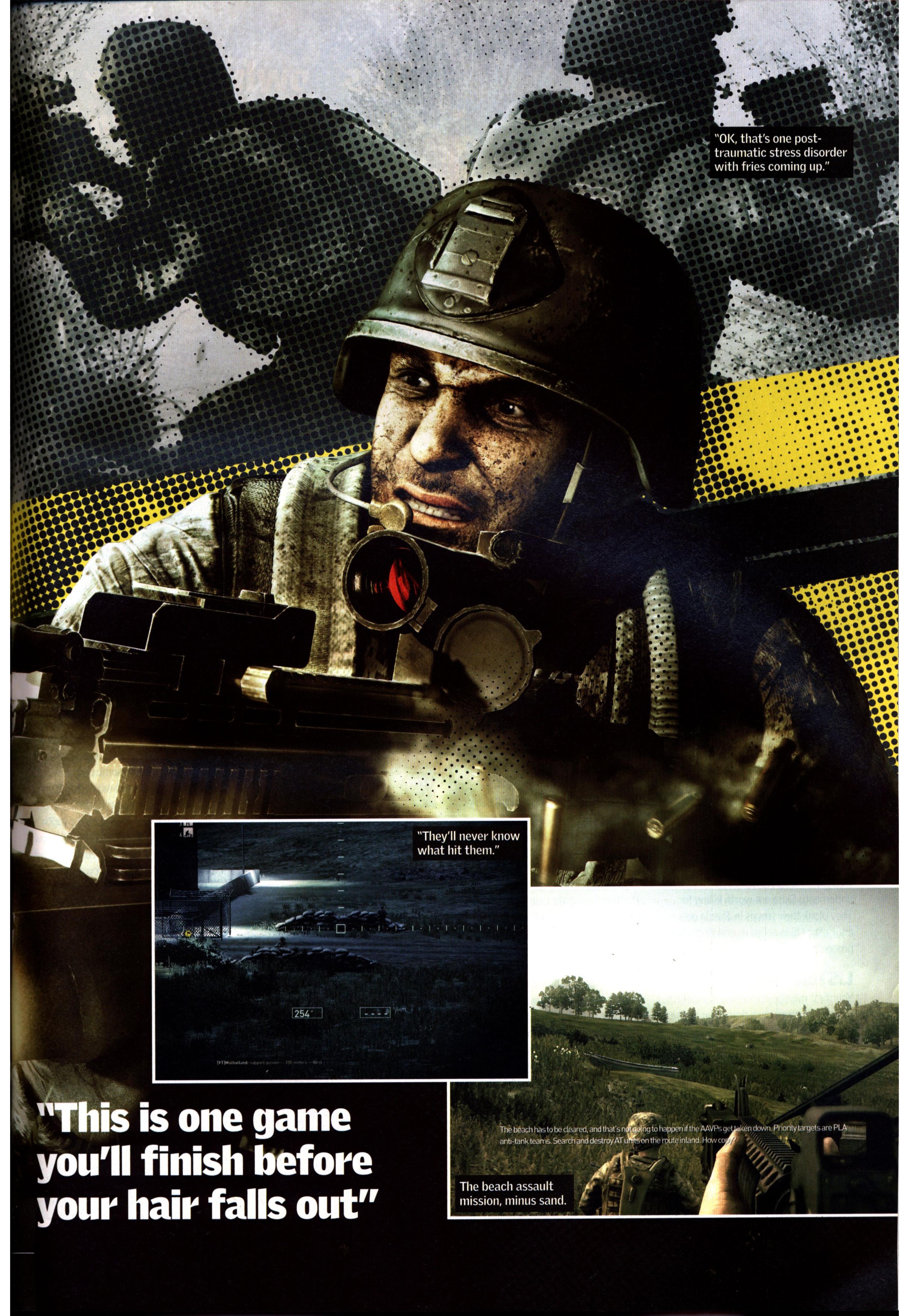 And just like real life, it's intended to be a genuinely shit-the-bed terrifying experience. As Lindop says, "I think people will walk away with a serious respect for the guys that stand out there and do it. Even in the game when .50 calibre rounds are zipping past your head you think Tm not getting up.' As a soldier I could choose to leave my squad. It's an open sandbox, it's like the real world, if a soldier goes AWOL, a soldier goes AWOL".