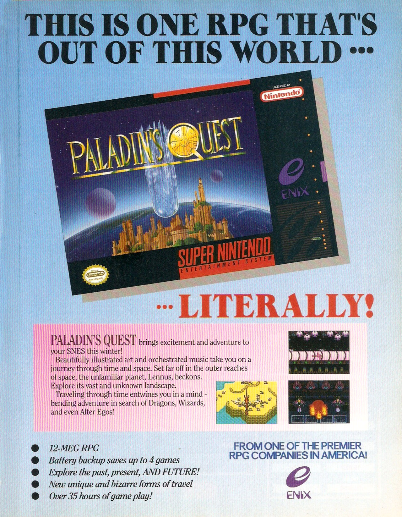 Despite many hits against Paladin, fans who enjoy lots of slow-going combat and character-building in their RPG's will appreciate the game for its enormous challenge and lengthy crusade. The rest of us, though, will do better keeping with the Zeldas, Manas, and Final Fantasies already out there, and those on the horizon.