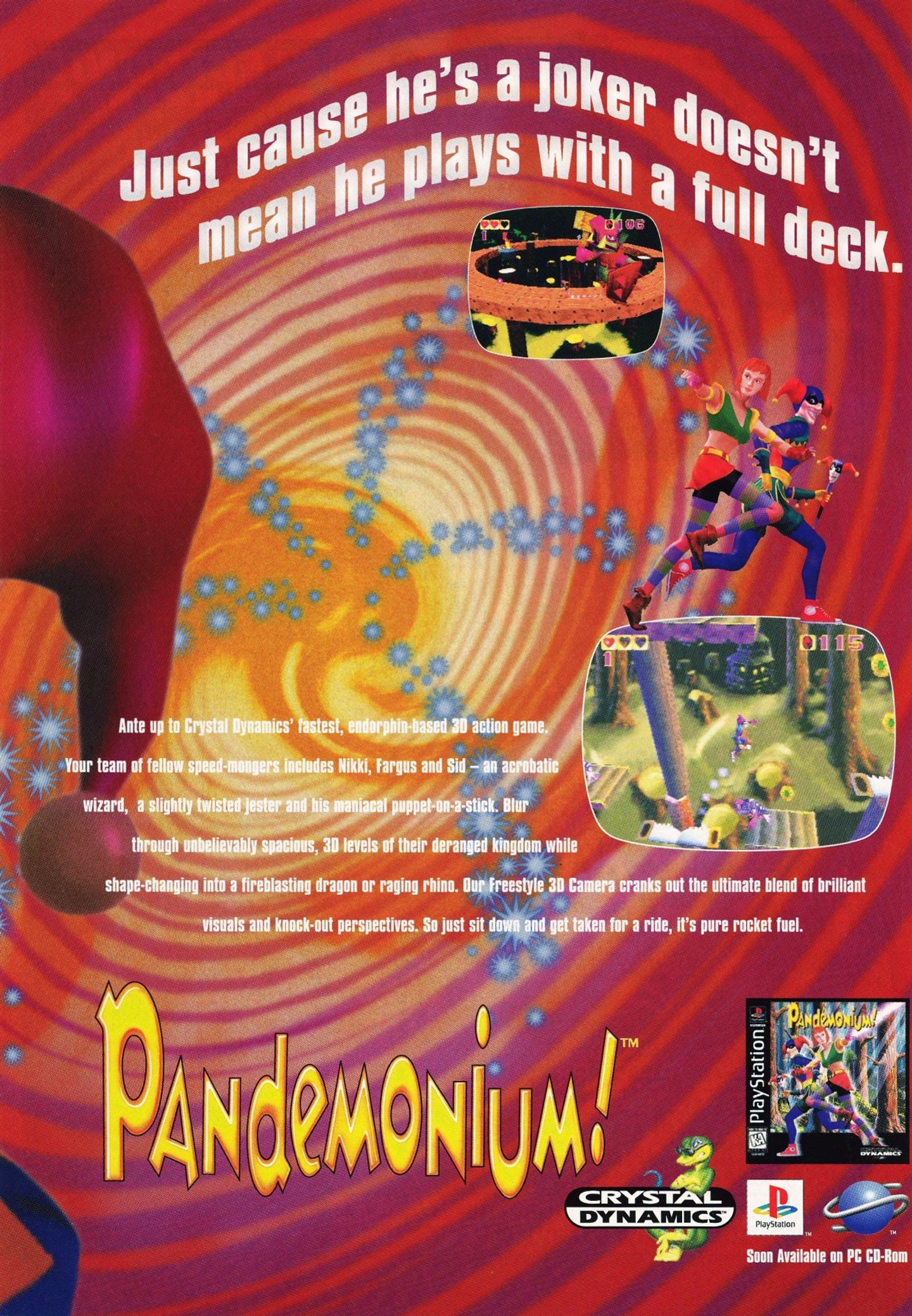 It's got the speed of Sonic, the wit of Gex and the zaniness of Hermie Hopperhead.What could it possibly be, you ask? Well, folks, it's total Pandemonium!, that's what it is, the new supercharged platform adventure from Crystal Dynamics.