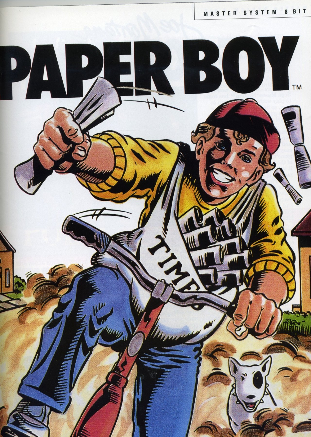 The highly successful arcade and Nintendo game is coming to the Master System this fall. You as a newspaper delivery boy have a job which sounds rather simple - make sure that everybody on your route gets a paper once a day. But it's not that easy as the sidewalks and streets are filled with mad dogs, road obstacles, kids on big wheels and cars who just don't watch where they are going. Three different routes to choose from and lots of challenging action and fun.