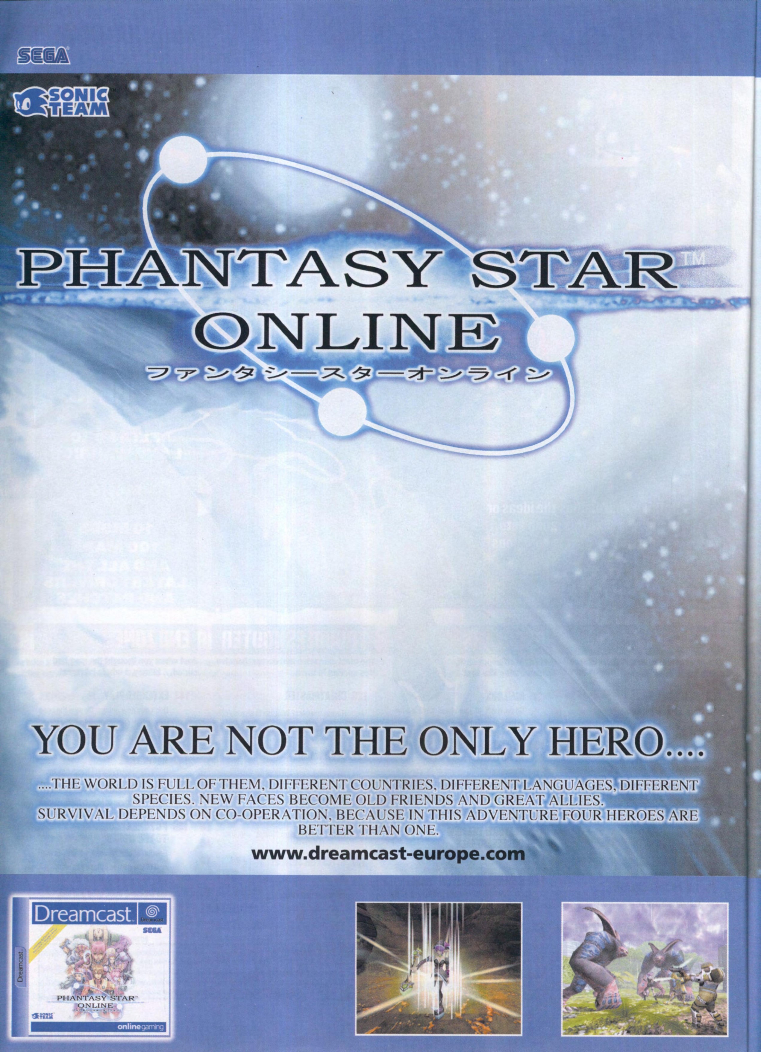 You take the role of one of these brave Hunters, looking for answers on a world destroyed by cataclysm. Phantasy Star Online (PSO) is a console based RPG unlike any other. As you adventure across the face of Ragol, you'll fight evil, battle monsters, and solve the mystery of the Pioneer 1, all while playing in a world with hundreds, perhaps thousands of other players. Phantasy Star Online is a fully online capable console RPG, allowing you to fight with a team of three other players, in a persistent world with a large population.