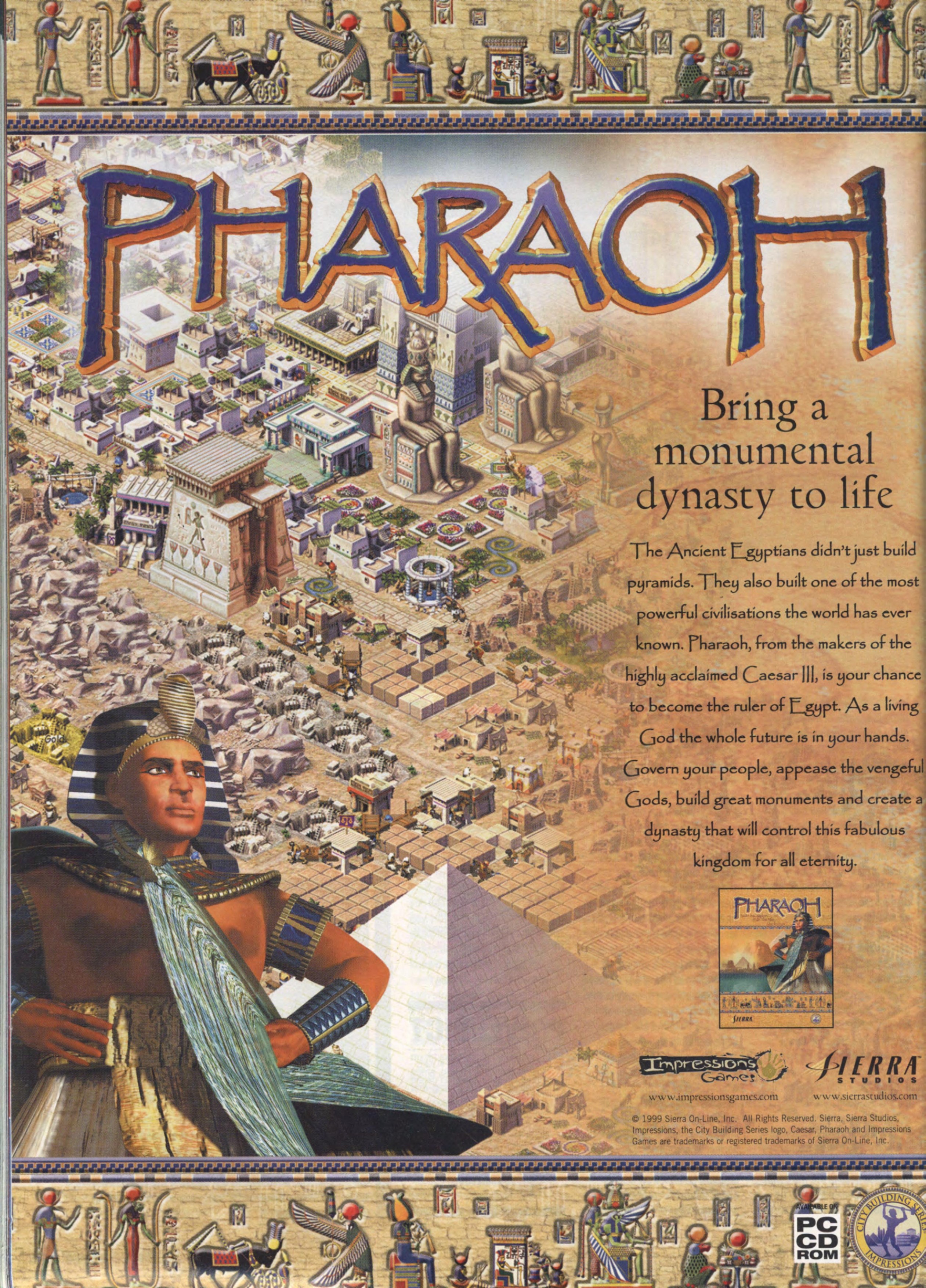 Have you had a look? What sort of game do you think it is, then? A first-person-shooter? A future sport simulation? Of course not. Impressions make real-time strategy games, and Pharaoh should slot comfortably into their highly successful city-building series. Set in ancient Egypt (as you might have guessed) during the period when the great pyramids were built, this city simulation game enables you to create majestic Egyptian cities, build large monuments, and farm at the mercy of the Nile River.