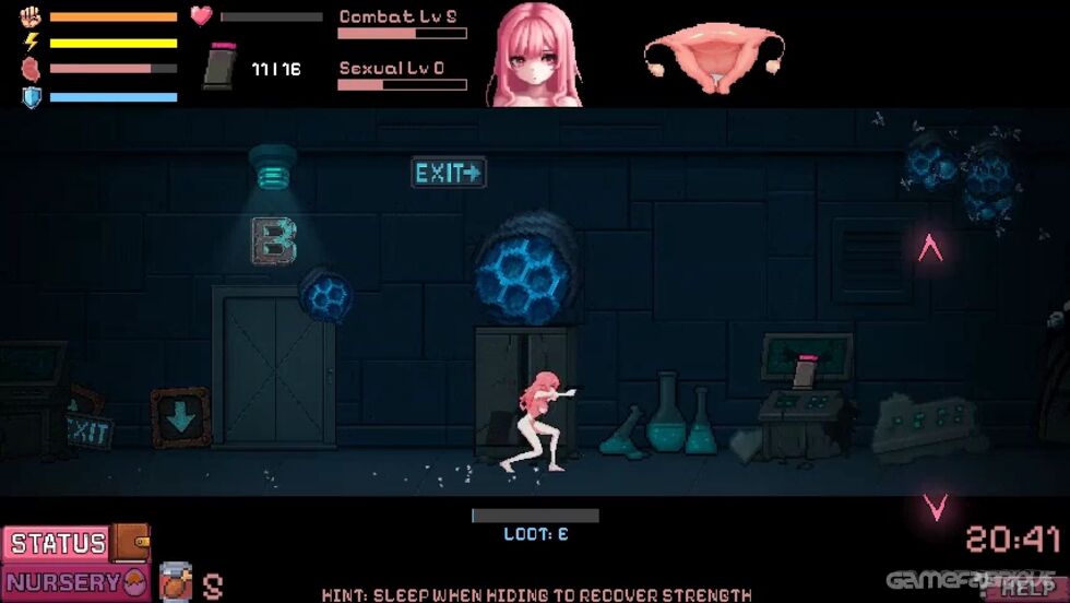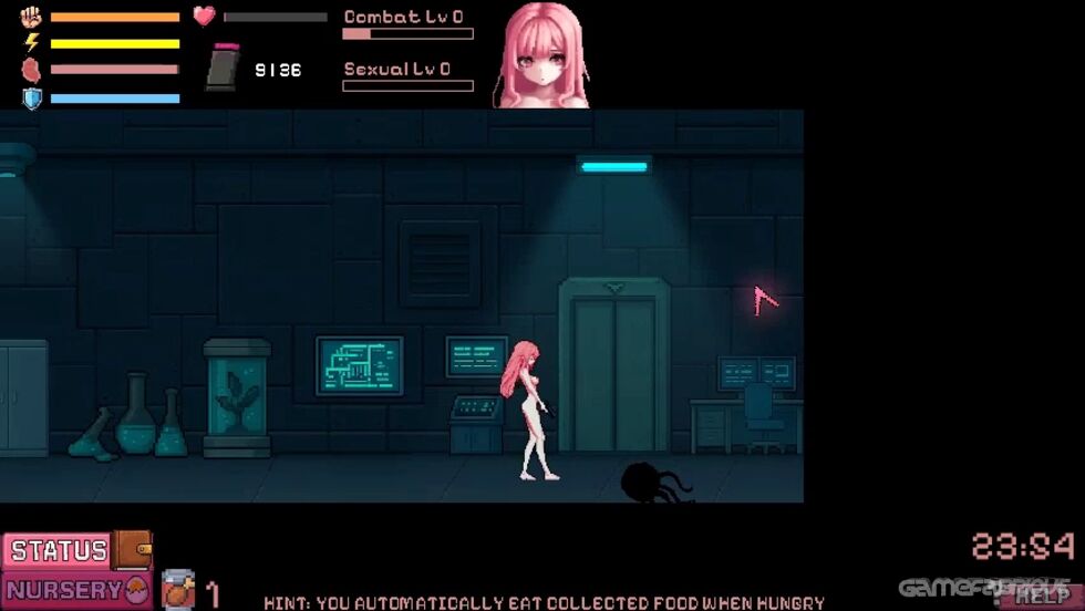 The main character in Pink Pulse is a chick called Peach, and no, we are not talking about Princess Peach from Super Mario World! This is the kind of game that is not super story-driven, but I feel that it more than gives you enough to go on. Peach wakes up in some kind of lab that has been ransacked, and all she knows is that she has to get out of here as the place is going to blow up in 24 hours! To make this task worse, there are all kinds of experiments in the form of creepy bug like monsters that have escaped in the facility, and they want to impregnate Peach!