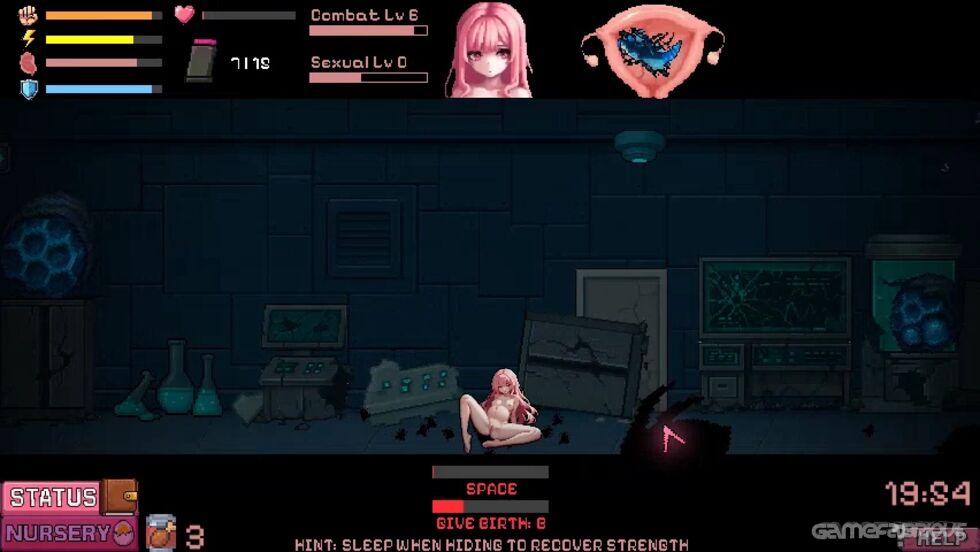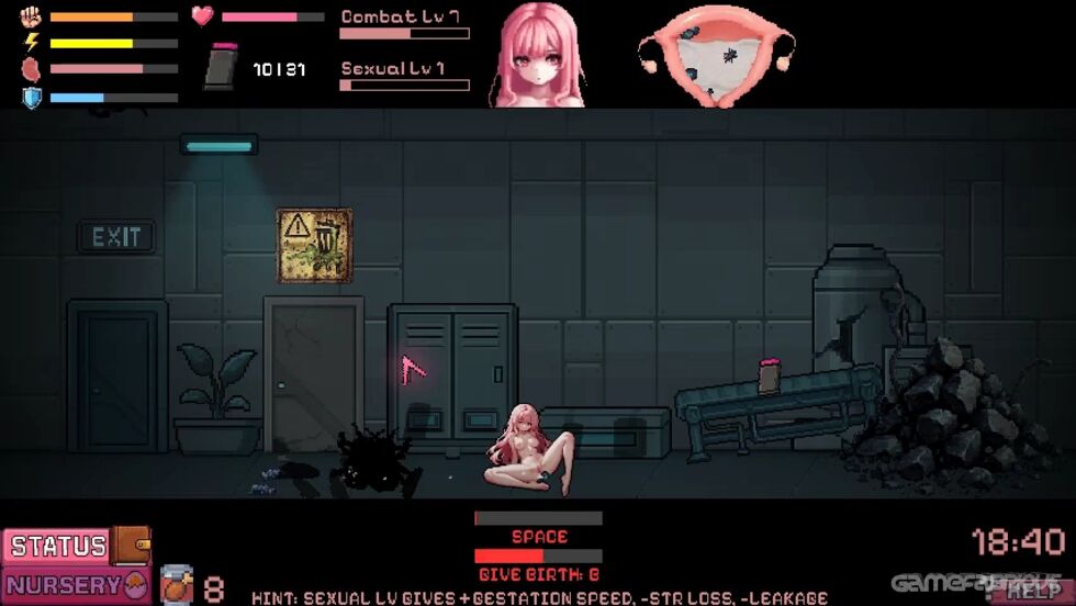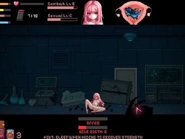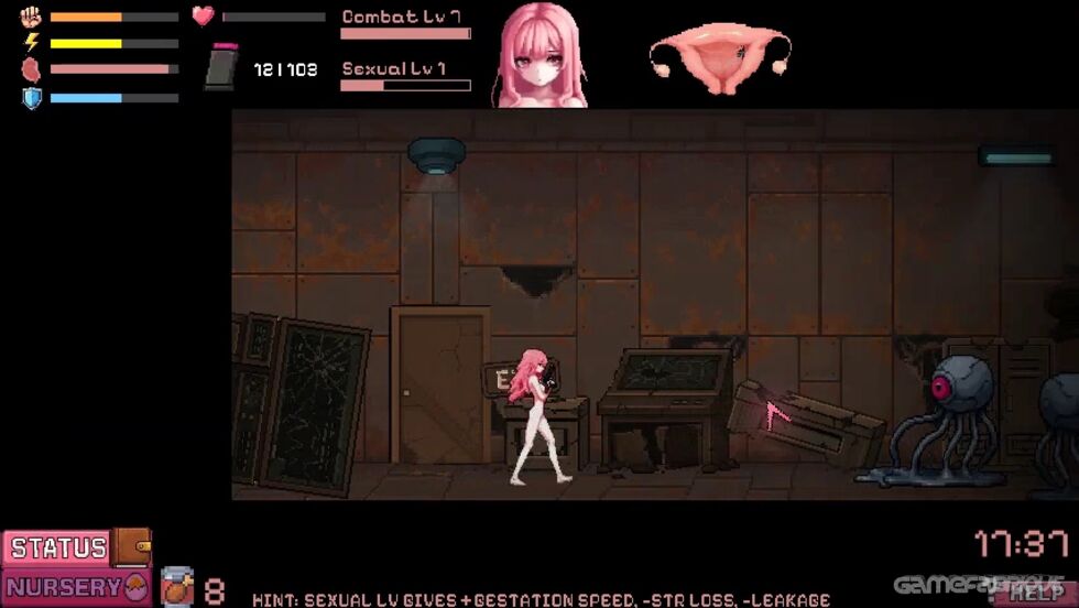 One of the most unique aspects of Pink Pulse is the pregnancy thing. If a monster gets a hold of you, they are going to bang you, and you may get pregnant. The thing here is that they can fill you up in your vagina, ass, stomach…. And bladder, the bladder one is kind of weird to me, to be honest, and I could have probably done without it. Anyway, a monster can grow if you end up pregnant, and when you pop, they will actually help you! I cannot think of another lewd game that does something like this. It is kind of like a retro shooter where you get a little helper to shoot at the enemies. This was such a cool addition, and I am not usually into the whole pregnancy thing, but this game does it in a very unique way that actually ties into the gameplay.