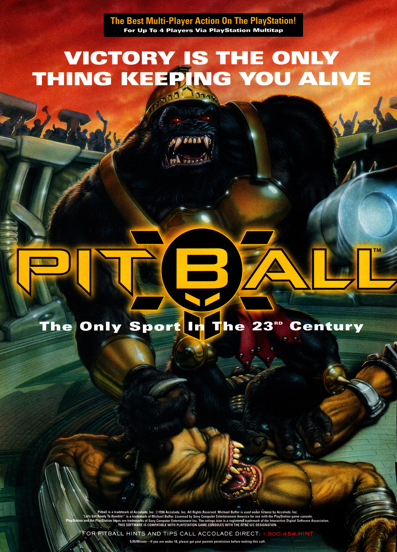 Take football, hockey, basketball and indoor soccer and combine them with a fighting game, shake it up real well, and out comes Pitball. Pitball takes these sports and removes everything that does not pump adrenaline, and calls it cyber-sports. The two-on-two action is fast, furious and non-stop. Oh yeah, I forgot to mention that all of this takes place in the future with 12 different alien races from 12 different planets. Throw in the universally renowned Michael Buffer and his trademark "GET READY TO RUMBLE," and Accolade has a winner on their hands.