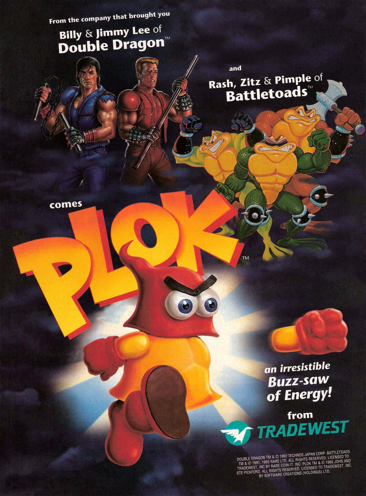 Plok is a terrific action game. The music and animation - not to mention the graphics - are sweet. The unusual power-ups are a big plus, as they add to the humor of the story. While the Bosses aren't anything to write home about, the actual game is visually stunning. The challenge level is really high, possibly turning off younger players, but hard-core gamers will love it. Tradewest has managed to make yet another killer cart.
