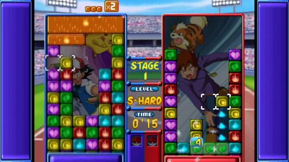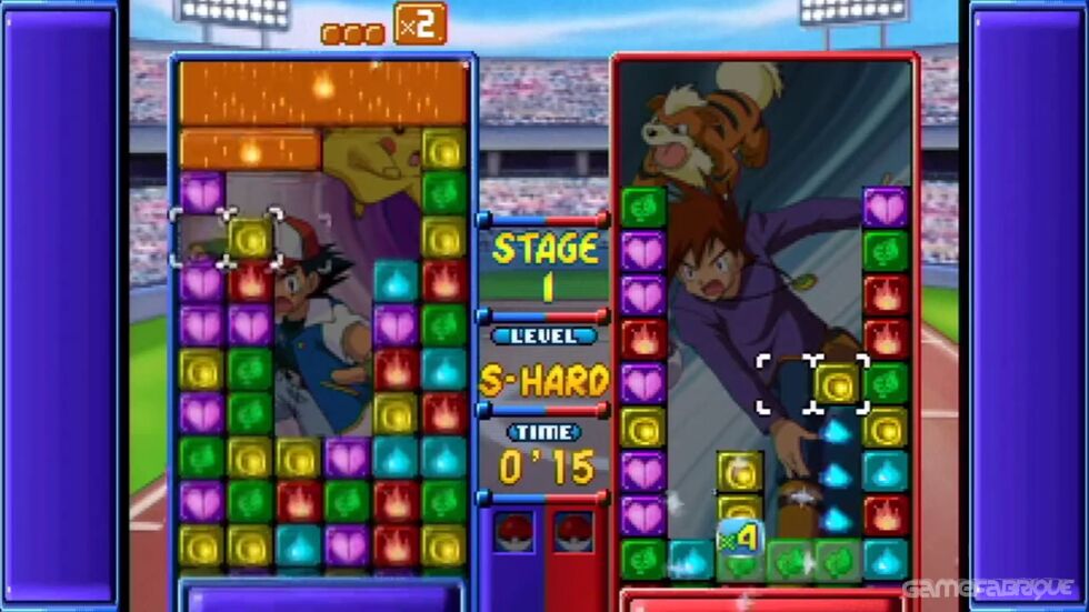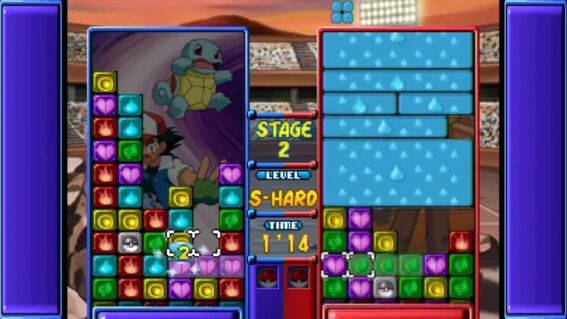 Forget the fact that this game's got the Pokemon characters and is a nearly spot-on update of the SNES puzzle classic Tetris Attack (a game so addictive that at one time it was banned from our offices). Quite simply, this is the best two-player puzzle game I've ever played. It takes really mastering the game to understand the nuances of the combo and chain system. But watching two experienced players face-off can be a knuckle-biting experience. Even if you're a beginner, it's an incredibly addictive game. The only flaw in this new version are the annoyingly repetitive voice samples ("I'm gonna win!"). There's an option to turn off all sound effects, but that includes voices, Pokemon sounds and the sounds that indicate a particularly devastating combo is headed your way (which is usually the only way you know you're about to be hit with a huge amount of garbage blocks). The 3D mode is a nice addition, although there's almost too much to think about and you can lose track of how close you are to the top very easily. It's too bad it doesn't utilize its association with Pokemon more; perhaps it could've used a mode where you "captured" more Pokemon to use. Puzzle League's got an amazing amount of options and modes--you can even edit your own puzzles and save them to challenge others. To ignore this game because of its Pokemon facade would be a crime. Excellent work NST.