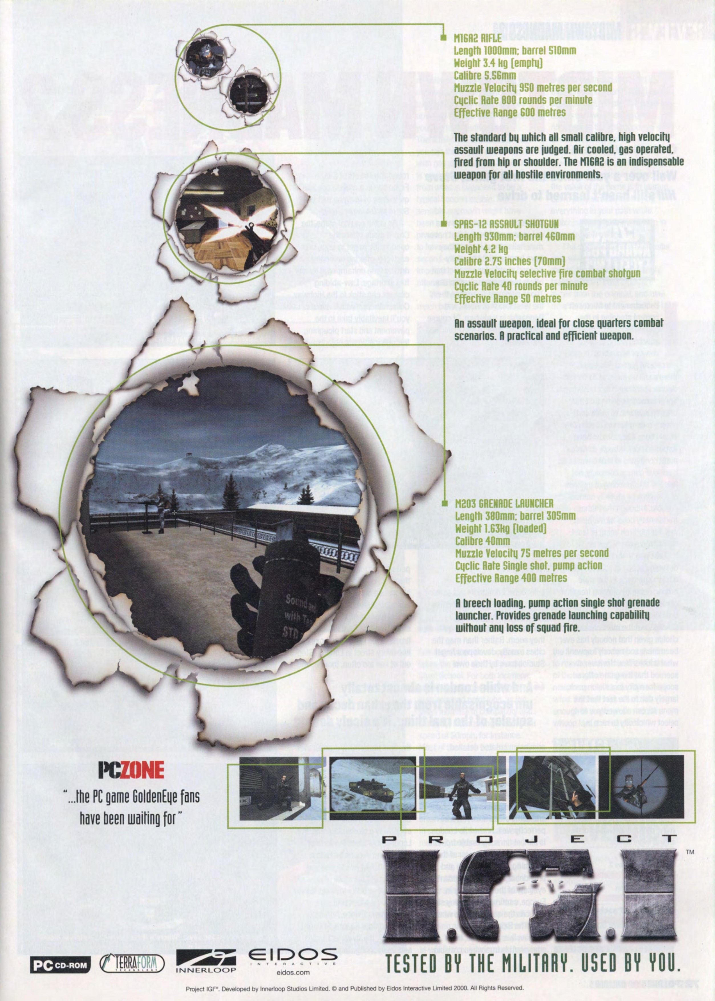 Billed as a 'thinker shooter' (a genre publisher Eidos seem to have sole license on after two fantastic Thief games), Project IGI widens the pace set by less thoughtful games in that as well as violently dispatching your foe, to succeed you must also outwit them in true Bond style. Expertise in espionage and chatting up babes, however, is no guarantee for success, but a modicum of common sense - when to run for cover and when to run to mother -should see you through what is a very challenging game.