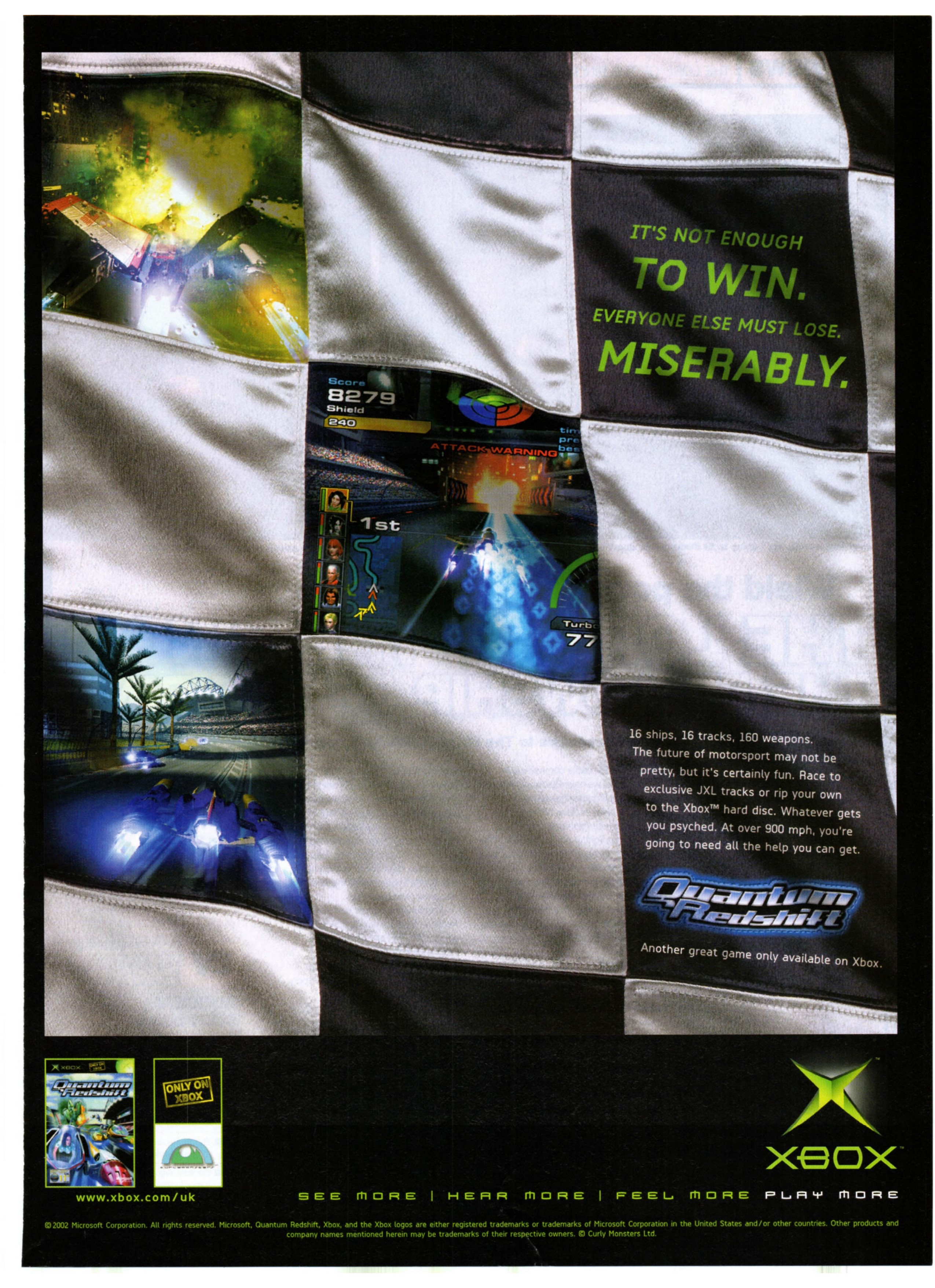 But all the back-story in world doesn't mean squat if you don't have the horsepower under the hood, and Quantum Redshift does. With paint-peeling frame rates and smooth, fluid controls, it takes even the most uncoordinated player almost no time to get into the control groove. Racing fans take note; here is another example of why you bought an Xbox.
