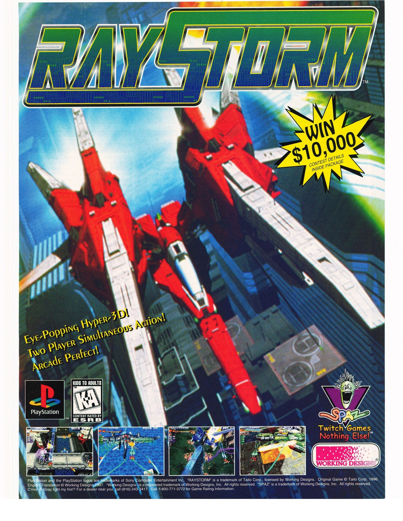 The olden days of shooters that caused gamers' hands to sweat because of the intense action are about to return-in one game at least. Spaz Games, a division of Working Designs, makes their PlayStation publishing debut with RayStorm.