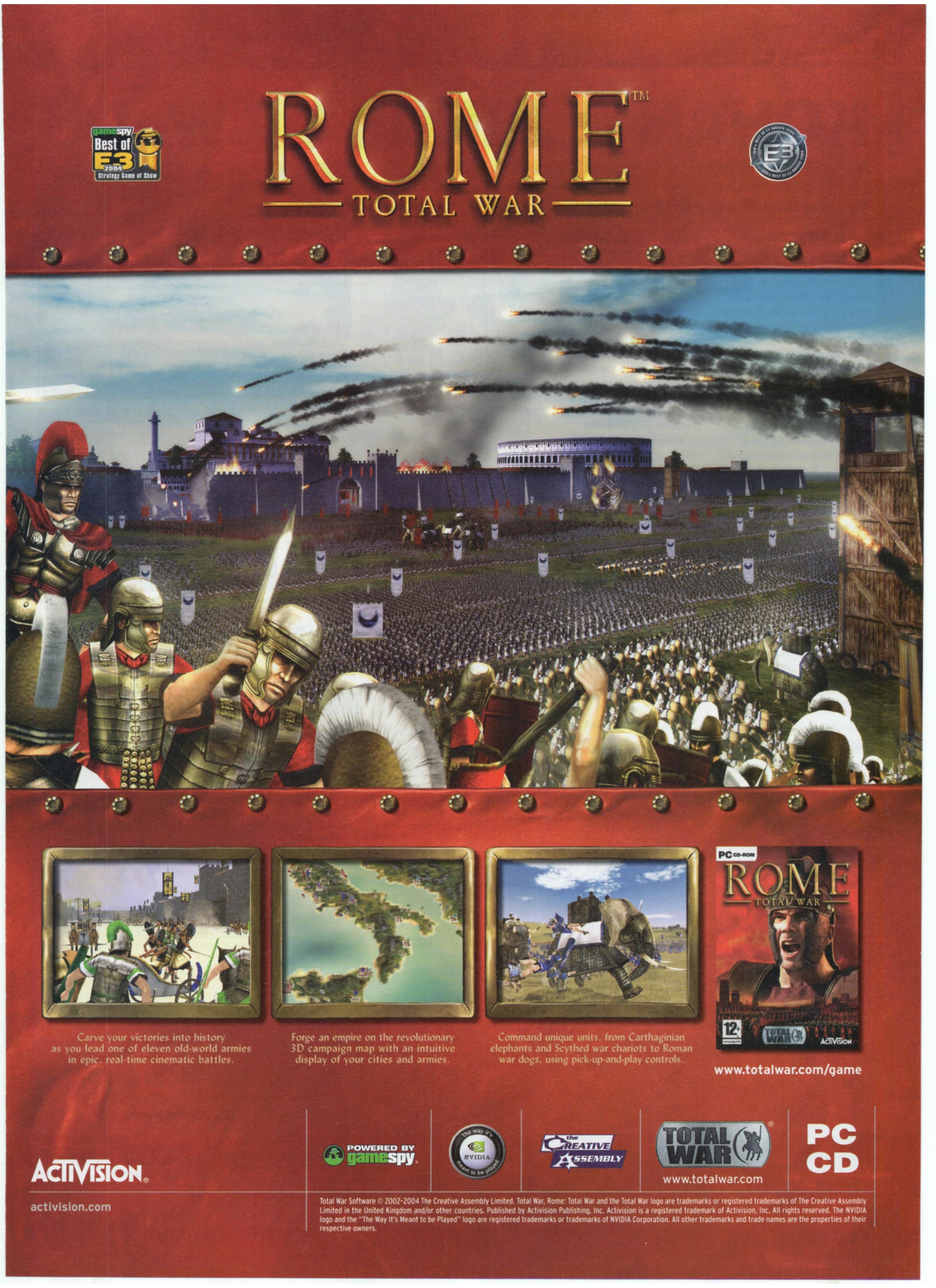 Rome: Total War is strategy perfection; the kind of game that Caesar himself would have played if he'd concentrated on inventing the personal computer rather than putting his profile on coins and being knifed in the back by Brutus.