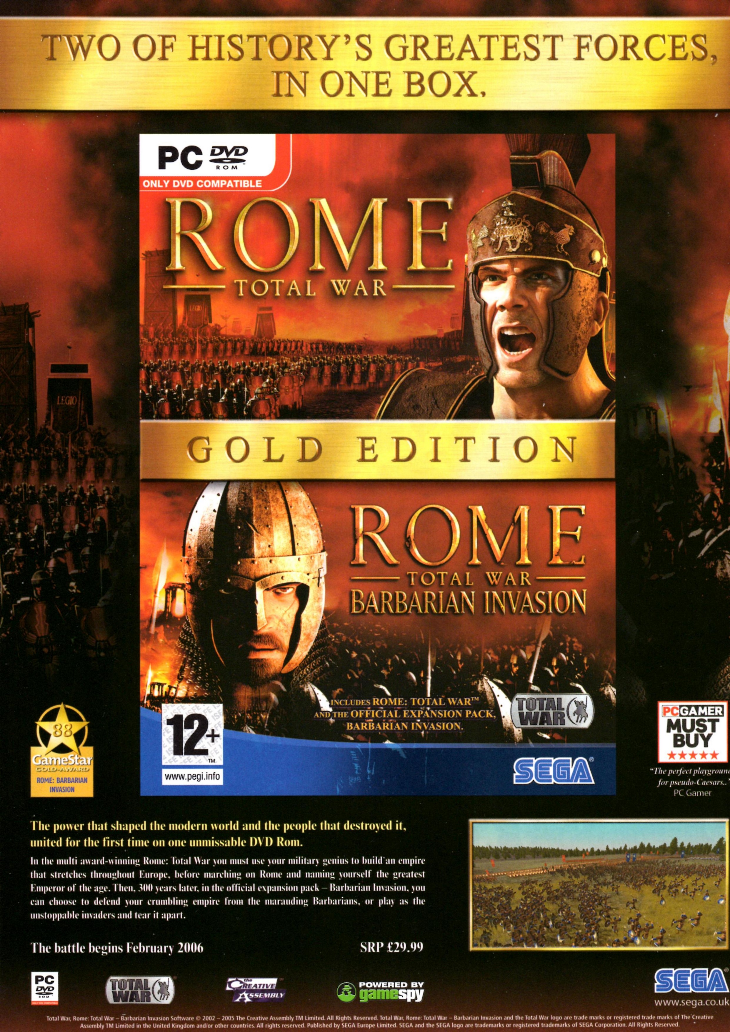 Even after almost a year and a half has past, Rome: Total War still remains one of the best strategy games I've played. The combination of both the RTS and turn based aspects of the game, where either gameplay style could stand on its own is still remarkable. If you're buying the Gold Edition, I'm assuming you haven't paid Rome: Total War yet and you're in for a treat. The difference with the Gold Edition however is the inclusion of the Barbarian Invasion expansion pack and of course the latest patches. This review however will focus on the expansion pack as the same gameplay elements are almost identical to Rome: Total War (link above).
