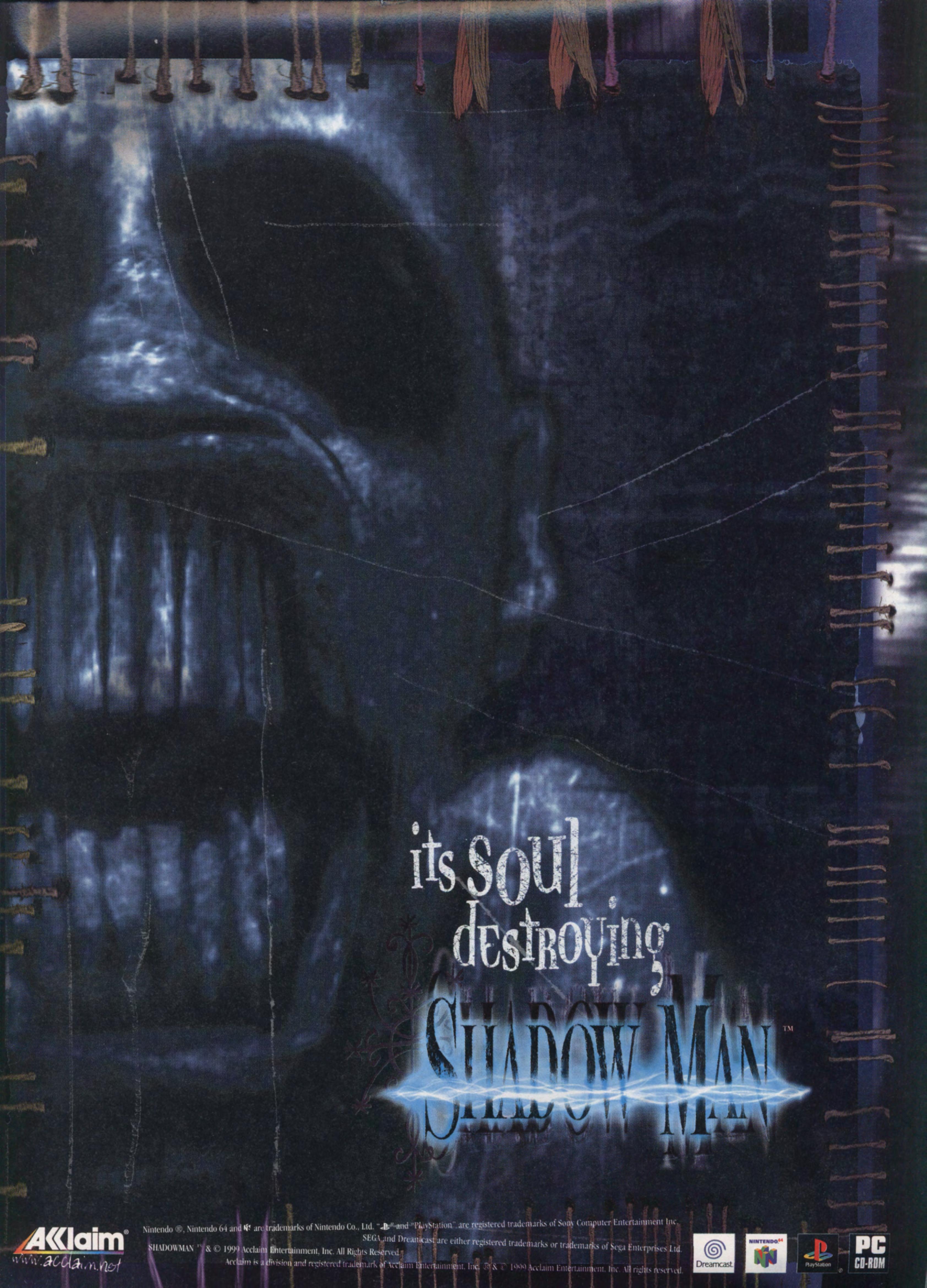 Shadow Man - это компьютерная игра 1999 года от Acclaim Entertainment, выпущенная для Nintendo 64, Sony PlayStation, Segas Dreamcast и ПК. Shadow Man основан на одноименном сборнике комиксов Acclaim Comics от Гарта Энниса и Эшли Вудс.