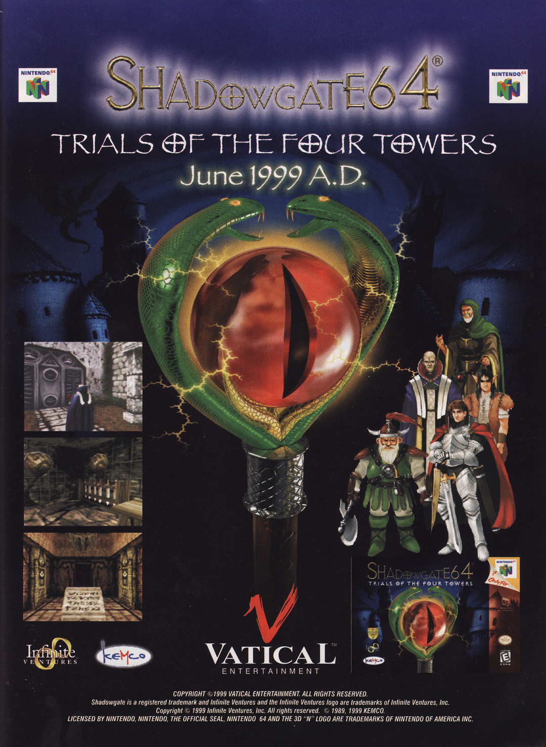 Shadowgate 64 put me to sleep. It's not a bad game by any means--Trials of the Four Towers is simply a snail of a cart. This first-person take on old point-at-the-hotspot-and-click-style adventure games is slow and methodical on one hand and very engrossing on the other. The puzzles can range from "duh" to "what the hell?" If you're looking for something more cerebral and relaxing, rent Shadowgate...you'll know in 10 minutes whether this game is for you or not.