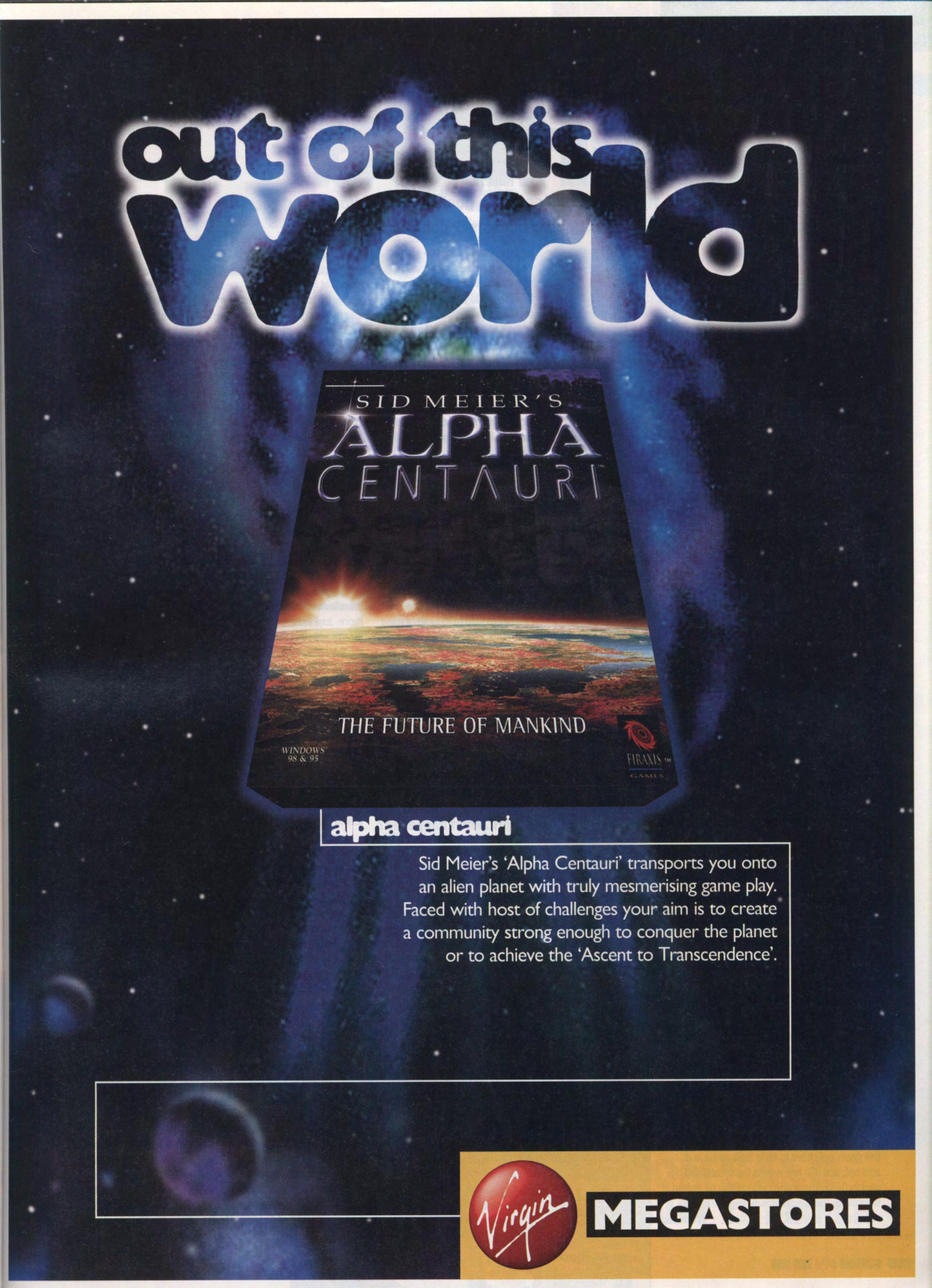 "For Civ fans, Alpha Centauri offers more of the same tenific gameplay, but this time there are so many bells, whistles and new ways of thinking that you'll wonder what hit you."
