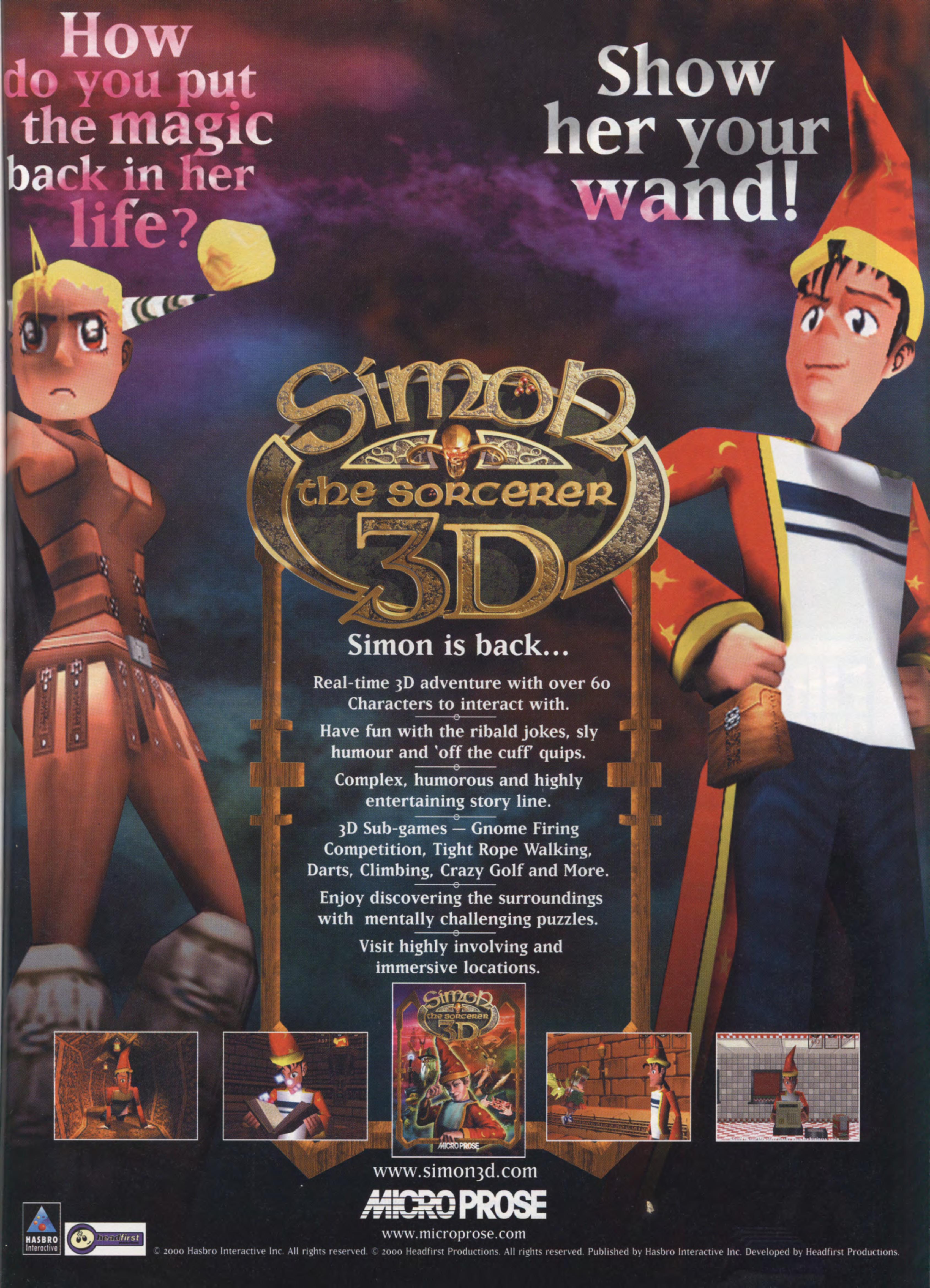 It's still a long way off - Simon 3D's release date isn't till next year - but it's already looking like one of the favourites in the 3D adventure game race. And there are a lot of competitors.