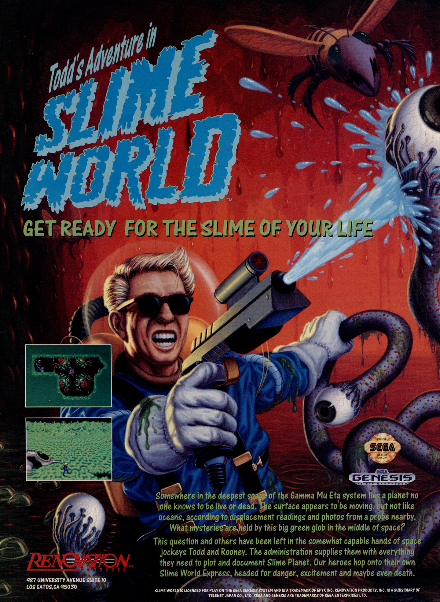 This is the first eight player cartridge ever made! Trudge, climb, jump, and crawl through hundreds of slime-dripping underground chambers and fight off dozens of gooey monsters. Choose from six different adventures, some designed with cooperation in mind, others where sliming your friends is your best strategy.