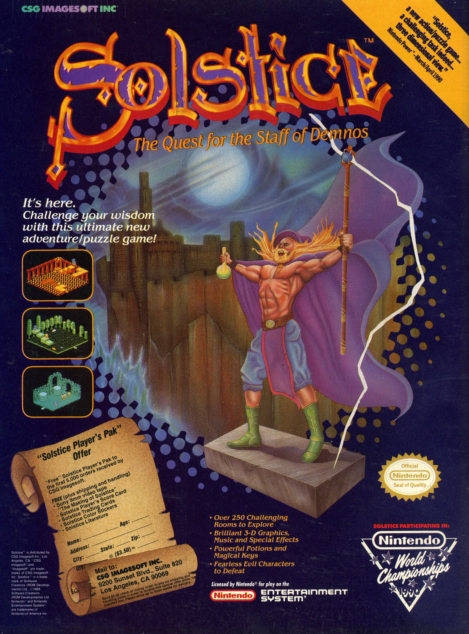 Solstice stars a brave adventurer named Shadax who must explore dozens of rooms on multiple levels to locate a magical staff. While this may not sound revolutionary, the implementation of the game is interesting and unique, with hidden rooms, secret items, and nasty traps and creatures lurking around every three-dimensional corner!