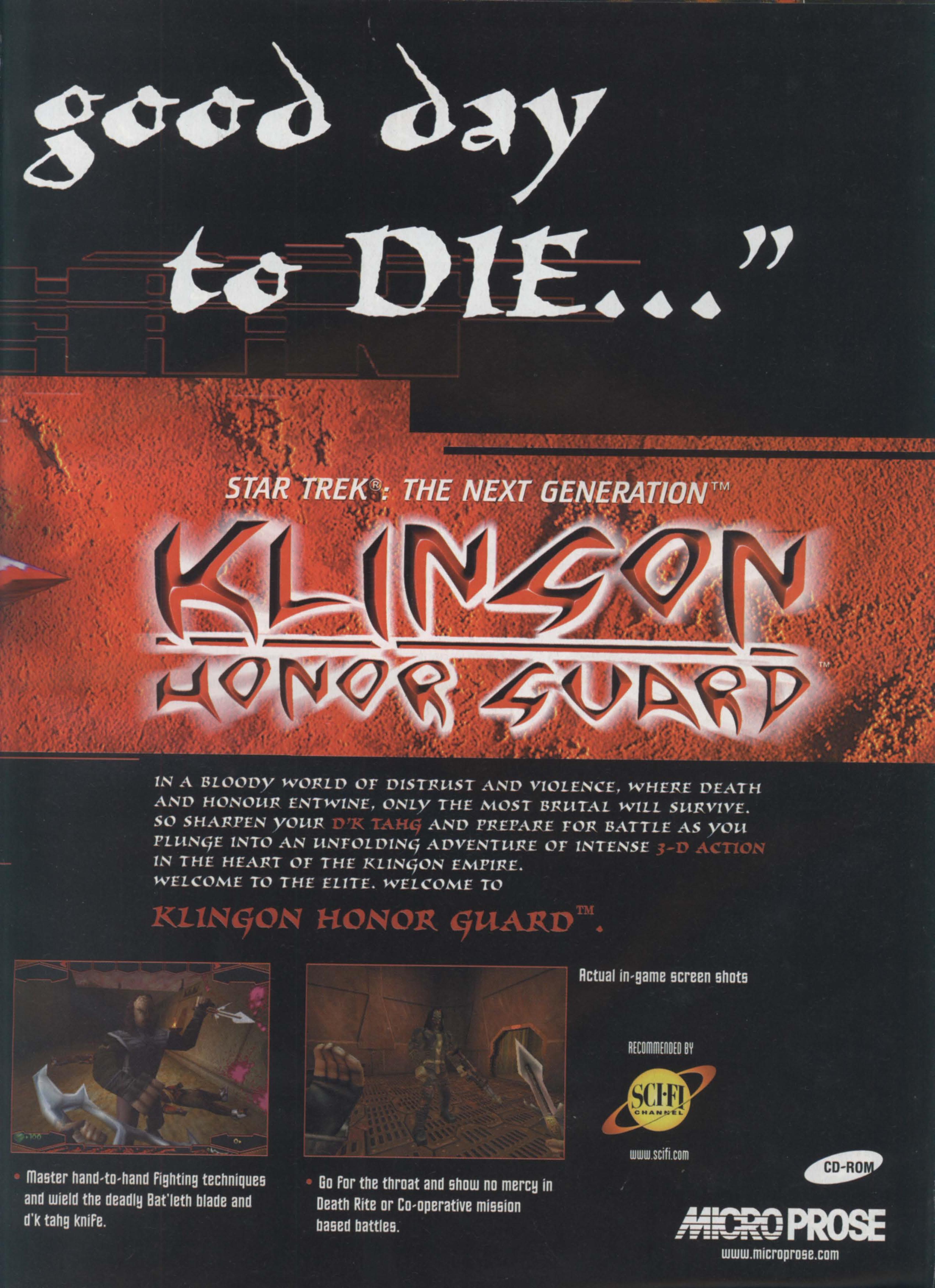 There's Little Doubt That The Star Trek: The Next Generation licence is very lucrative and MicroProse are obviously very keen to hold on to it. The thing is, licences can be as limiting as they are fruitful. In the case of ST:TNG, not only do the cast get final approval on how their characters look on-screen, but everything has to be passed under the hypercritical eye of Paramount to ensure that the licence isn't harmed or damaged in anyway. In other words, the crew can't act out of character in any way, so they'll never be involved in merciless killing or deathmatch shenanigans -they'll kill the Borg, but only when it's necessary. And that's part of the reason why Klingon Honour Guard is being developed. People want to run amok in the Star Trek universe blasting everything in sight - they want Star Trek Quake, and that just wouldn't wash with Paramount. As a result, the developers have decided to use the UNREAL engine to create a game set within the Star Trek universe, but features none of the characters from the series. Yep, they've gone Klingon.