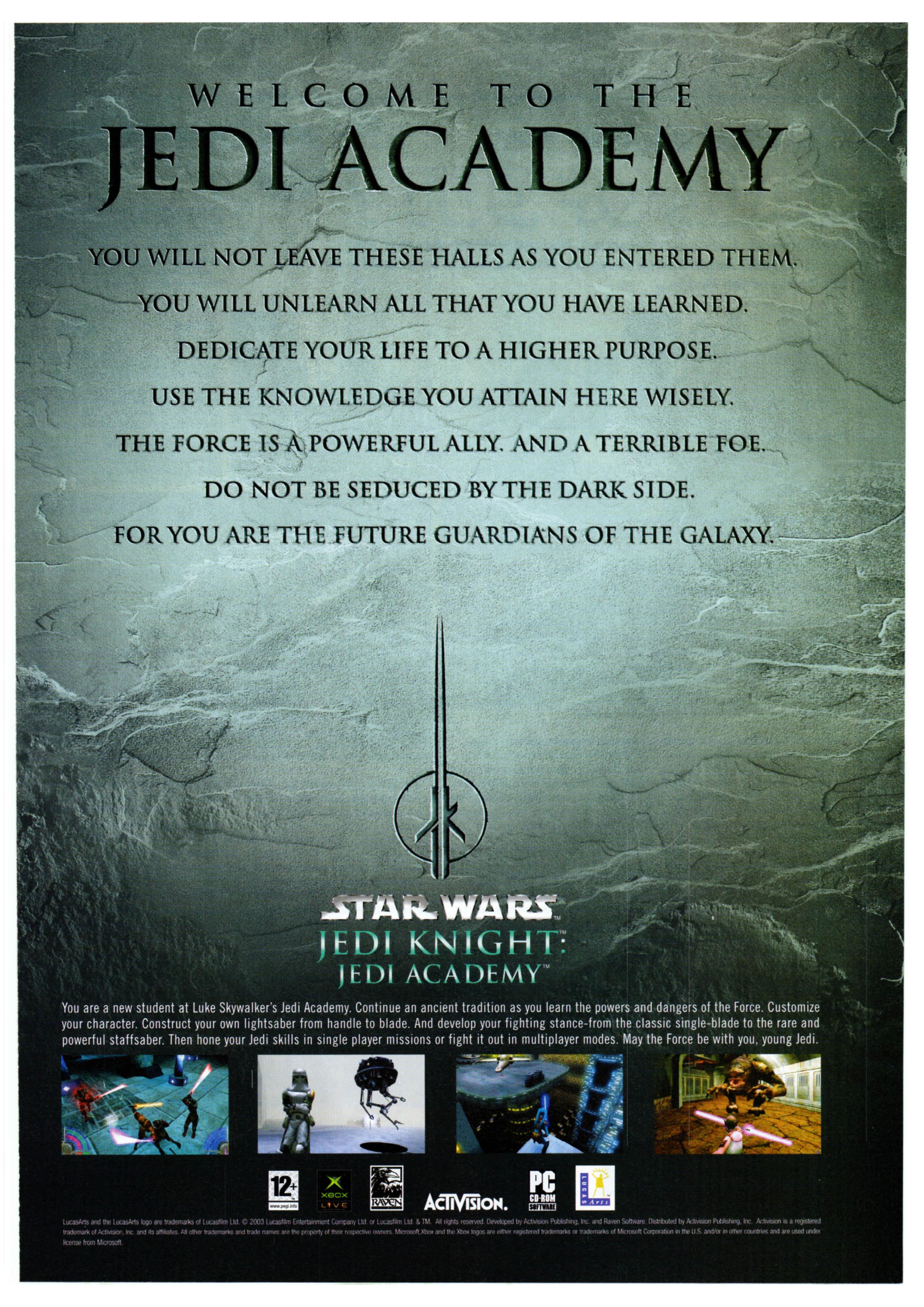 Star Wars Jedi Knight: Jedi Academy — идеальная игра по вселенной «Звёздных Воин», в которой геймер перевоплотится в джедая, возьмет в руки световой меч и будет плавить каски штурмовиков и тела ситхов.